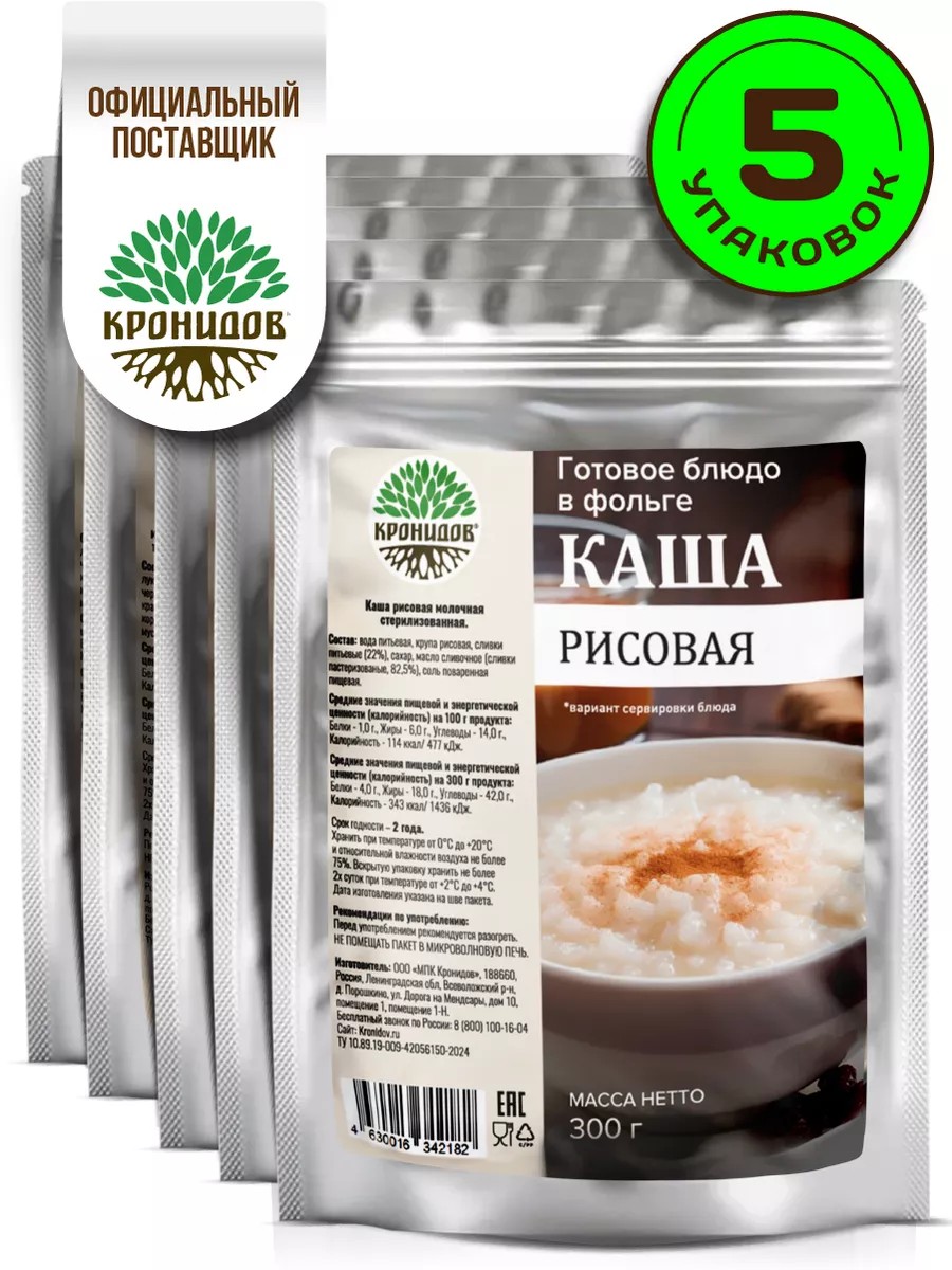 Кронидов Готовая еда, Каша молочная рисовая, 5 уп. по 300 гр.