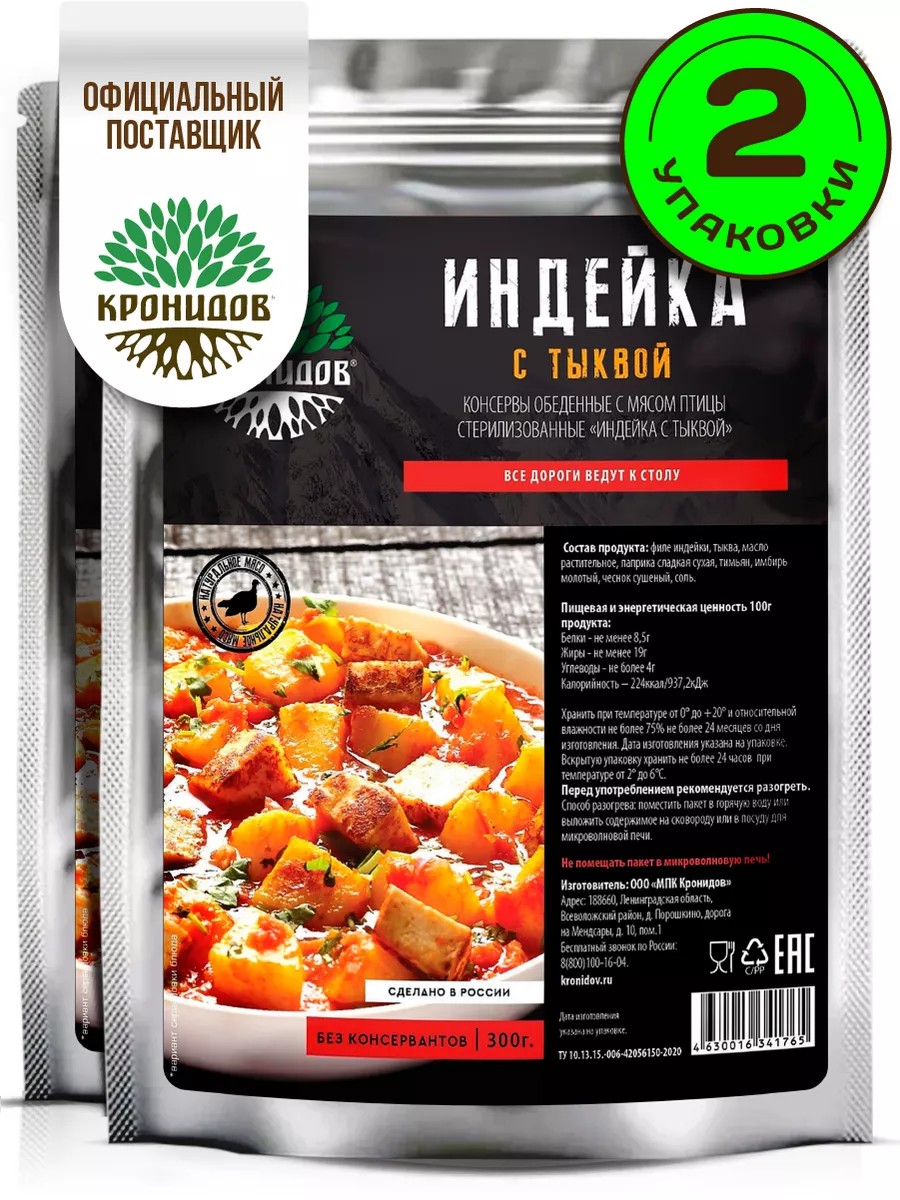 | Комплектация | Индейка с тыквой 300 гр; 2 упаковки |