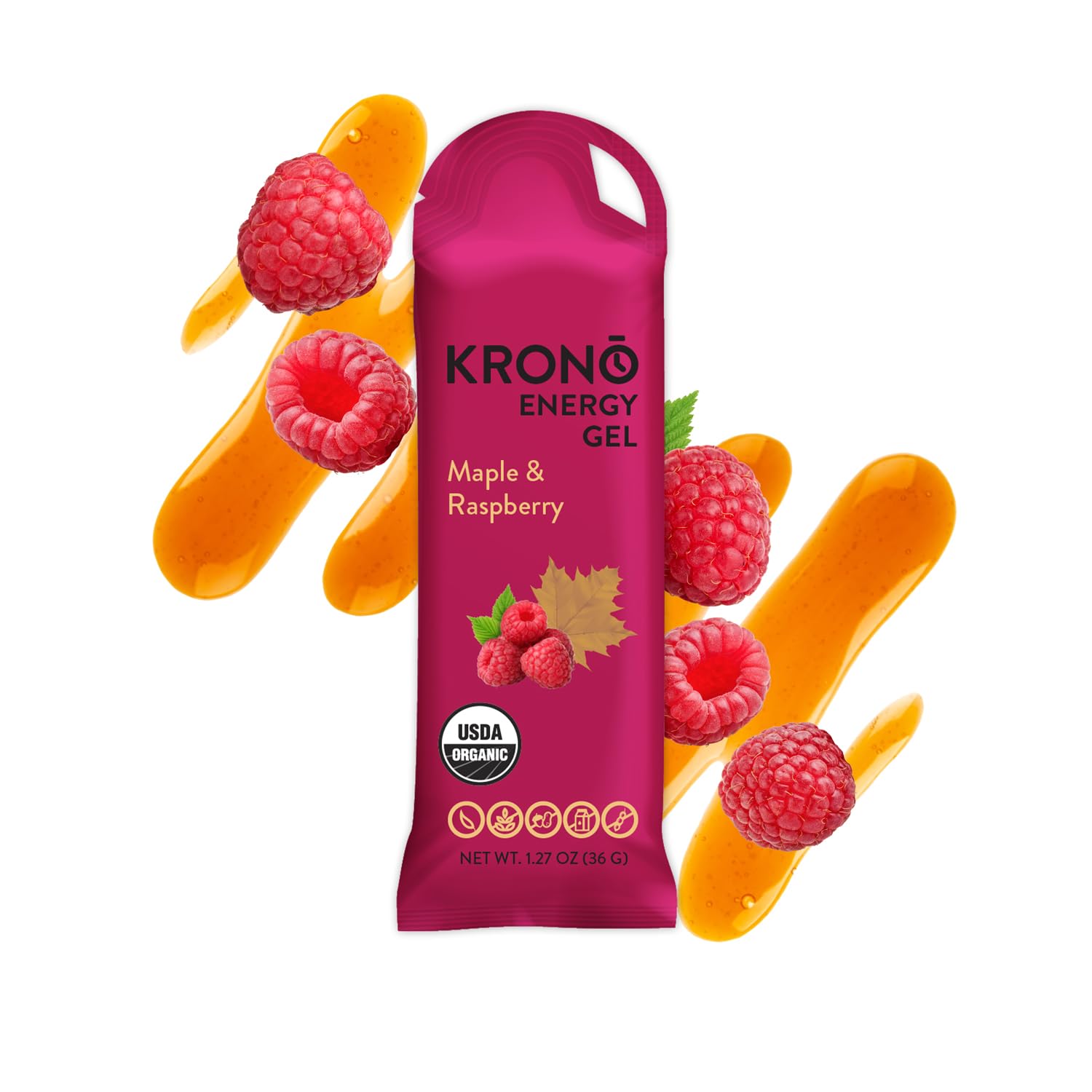 POWERED BY ORGANIC MAPLE SYRUP: Made with premium organic maple syrup, a natural source of antioxidants, electrolytes, and essential nutrients, these gels deliver a quick and sustainable energy boost while supporting muscle recovery and reducing fatigue. CONVENIENT PORTABLE: Designed for your active lifestyle, the compact, single-serving packaging makes it easy to carry and consume on the go, ensuring you stay energized whether you're running, cycling, hiking, or tackling a busy day. VEGAN GLUTEN FREE: Carefully made without gluten, these energy gels cater to diverse dietary needs, offering a clean and reliable energy source for everyone. Vegan, Gluten free, Peanut and nut free, Dairy free, Soy free. DELICIOUSLY NUTRITIOUS: Experience the perfect combination of flavor and function—these gels not only taste great but are packed with the energy you need to perform at your best, every time. OPTIMIZED PERFORMANCE NUTRITION: Formulated to deliver a perfect balance of carbohydrates and nutrients, these energy gels enhance endurance, stamina, and recovery, helping you push your limits and achieve your performance goals. NATURAL ENERGY BOOST: Crafted with simple, all-natural ingredients, Krono Gels provide steady, long-lasting energy to fuel your body through activities, workouts, or outdoor adventures without any unnecessary additives.