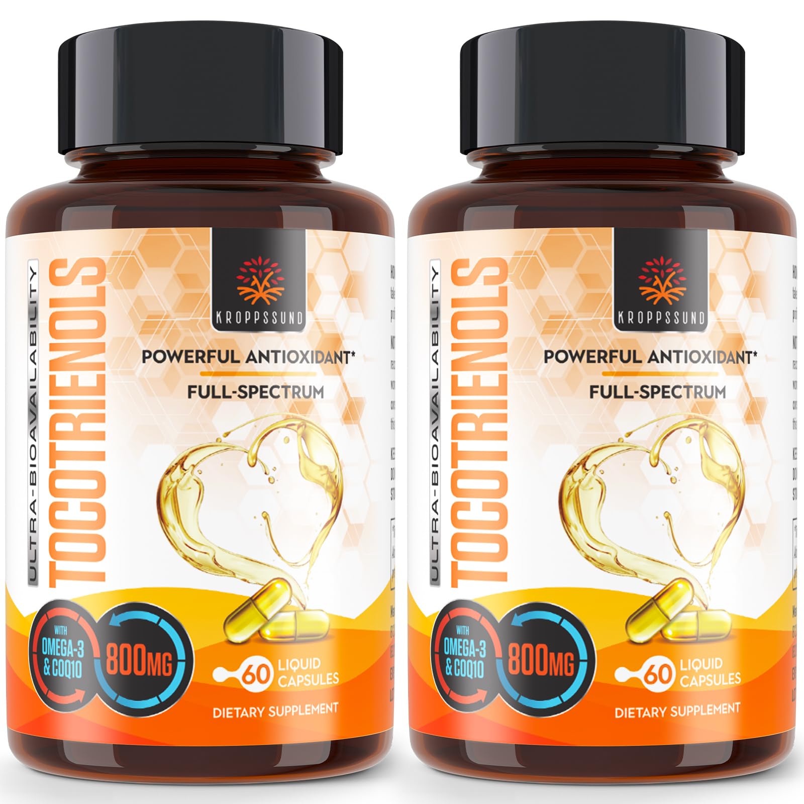 Kroppssund Tocotrienols 800mg Supplement | Rich in Vitamin E Tocotrienols | Cardiovascular Antioxidant Cellular Energy Production - 120 Liquid Capsules Unflavored 60 Count (Pack of 2)