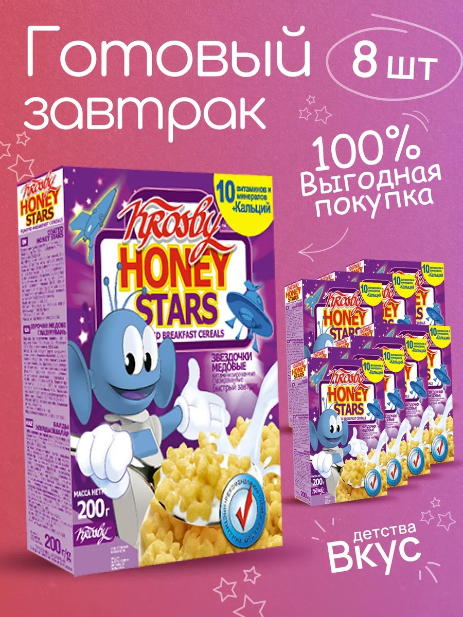 KROSBY Завтраки готовые медовые звездочки 8шт по 200гр