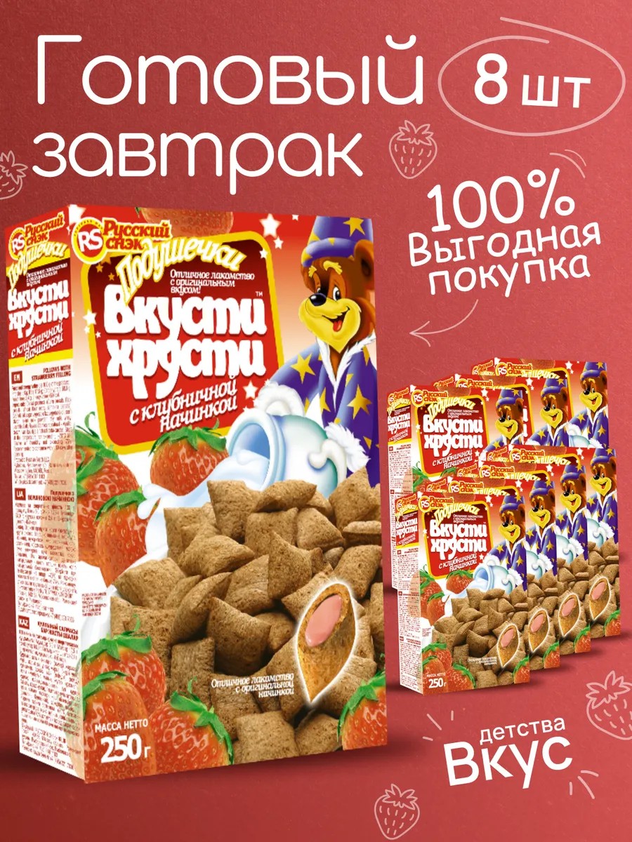 KROSBY Сухой завтрак для детей подушечки клубничные 8*250г