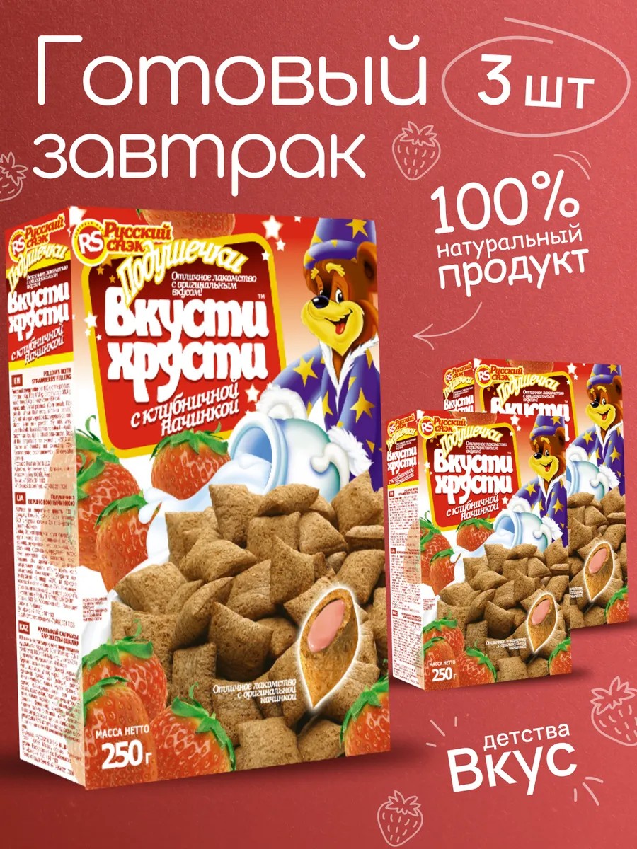 KROSBY Сухой завтрак для детей подушечки клубничные 3*250г
