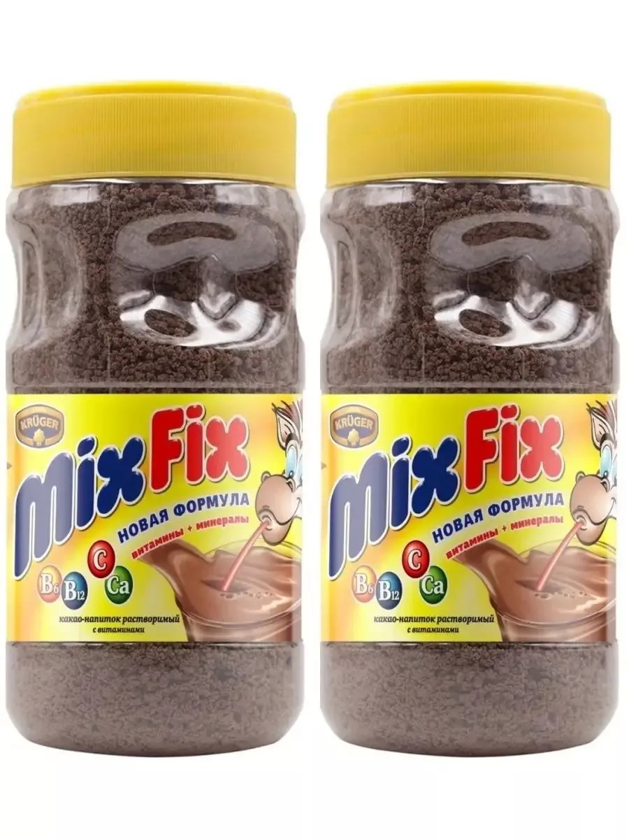 В комплекте 2 упаковки. Общий вес комплекта 750 г. Krueger, Mix Fix какао. Чтобы с утра зарядиться энергией и отличным настроением на весь день, рекомендуем вам выпить чашку какао. Данный напиток не просто вкусный, а витаминизированный. К тому же, его легко приготовить и можно использовать как для детей, так и для взрослых. Какао, отличное дополнение к завтраку или полднику. Компактная упаковка позволяет надолго сохранить аромат напитка, производитель использует качественные зерна для приготовления Mix Fix, благодаря чему чувствуется настоящий привкус шоколада. Можно разбавлять как с холодным, так и с горячим молоком.