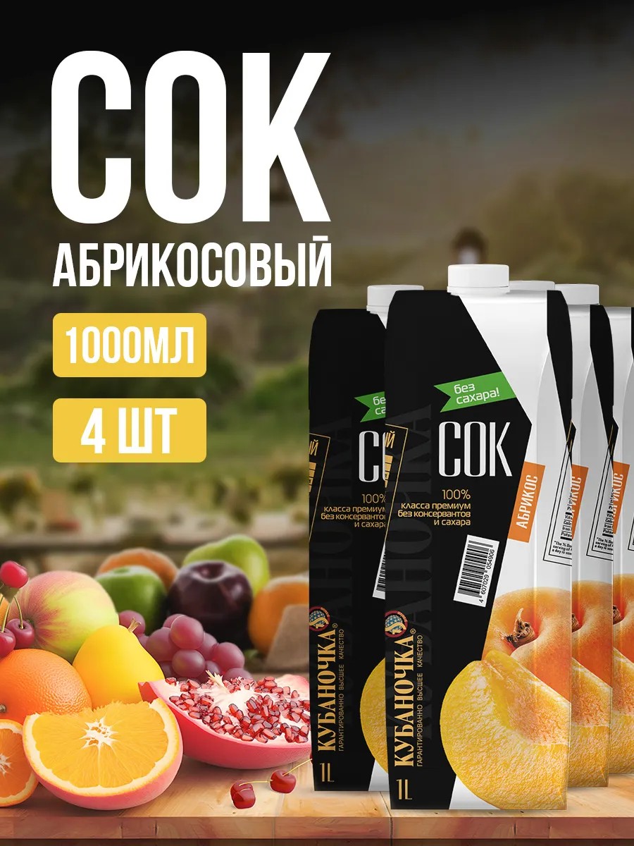 Кубаночка Сок Абрикосовый с мякотью 1л 4 шт
