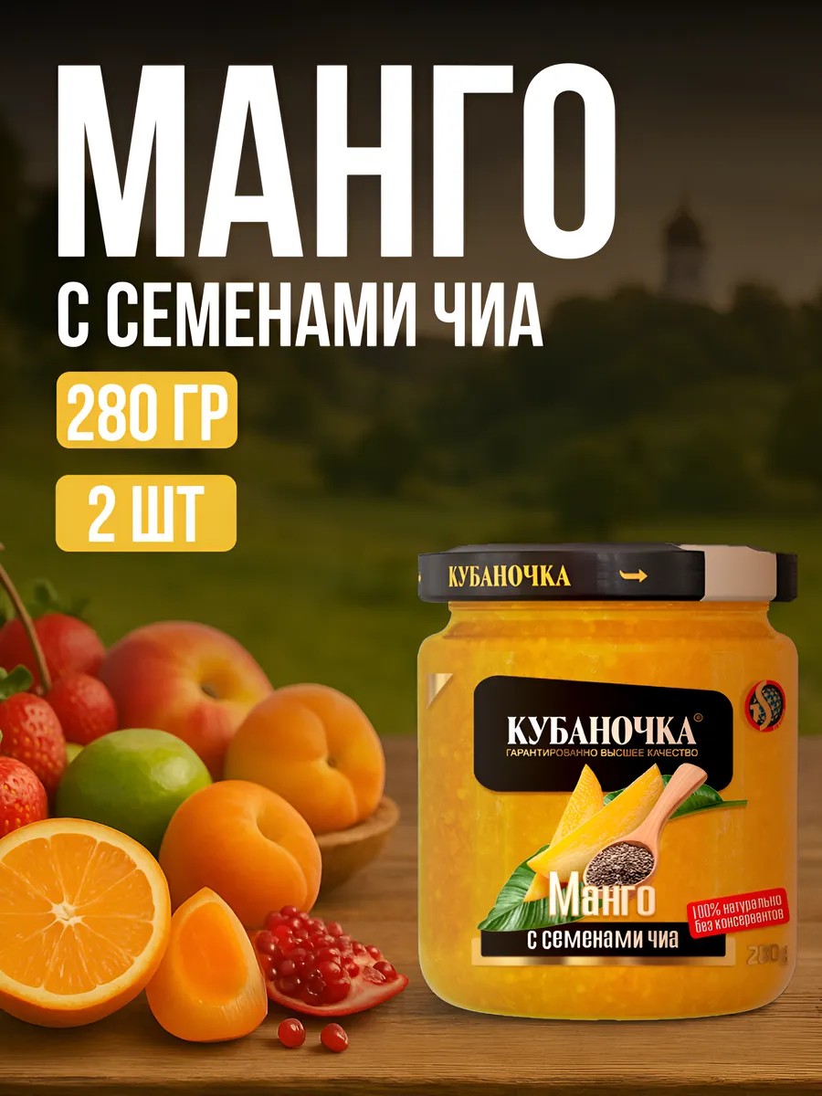 Кубаночка Манго с семенами чиа десерт 280г стекло 2 шт