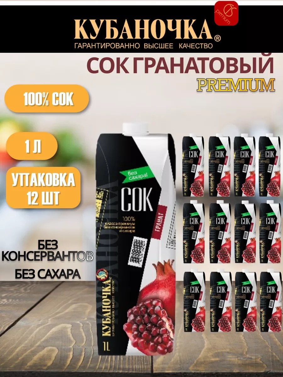 Кубаночка Гранатовый сок восстановленный Кубаночка, 1 л, 12 шт