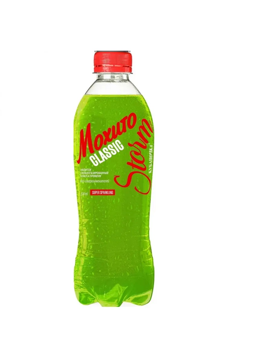Kubanochka, Storm Mojito Drink 500 ml, 1 piece. The Storm Mojito drink from Kubanochka is an explosion of flavor and refreshment! This highly carbonated mojito from the Kubanochka brand refreshes and energizes on the hottest day.