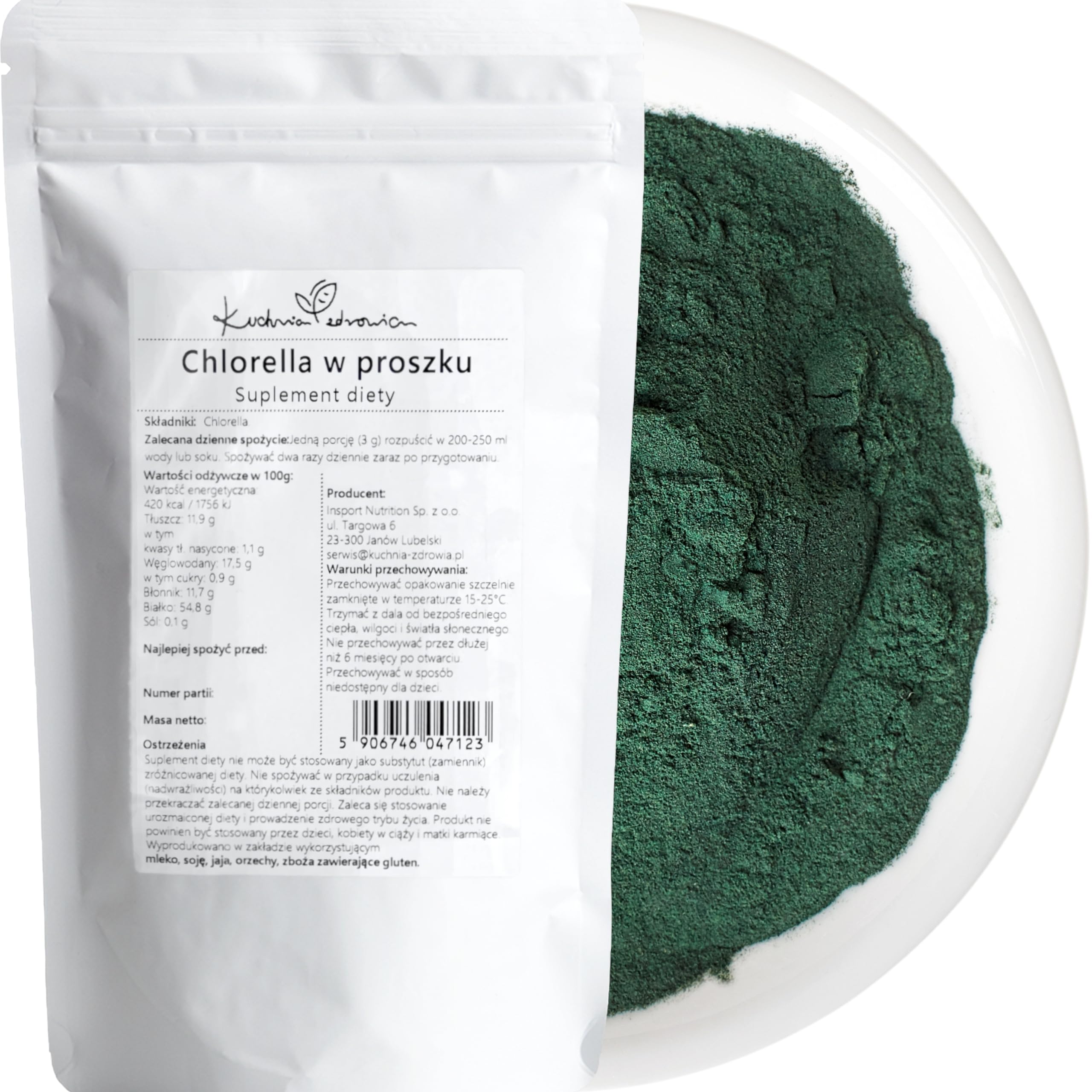 Kuchnia Zdrowia Chlorella powder - 250g per pack - Detoxification - Body cleansing - Natural - No unnecessary additives - Ziplock packaging.
