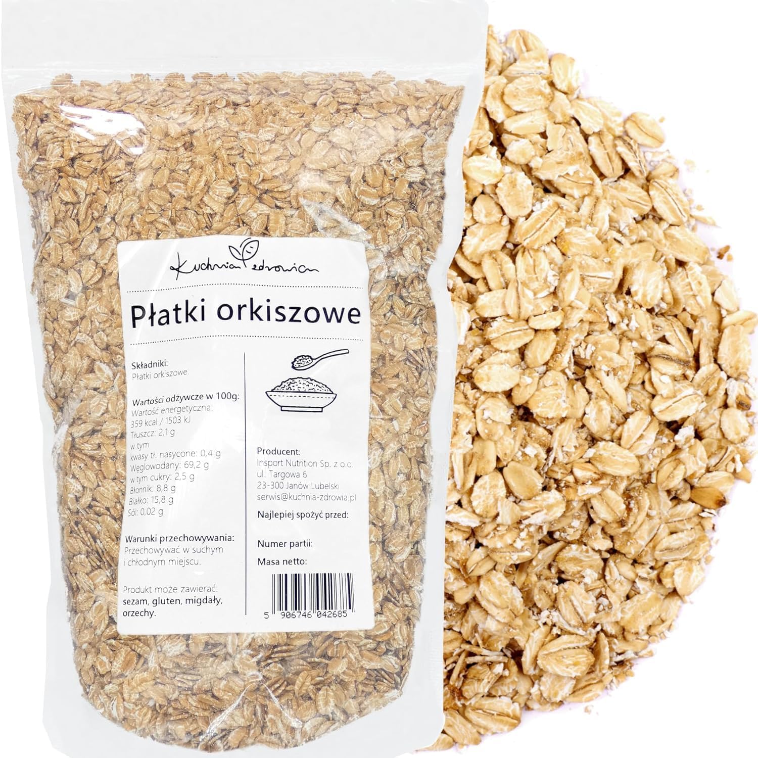 Kuchnia Zdrowia Kuchnia Zdrowia - Spelt Flakes - Breakfast - High Quality - Leak-proof packaging with zipper - Doypack: (1000 Grams)
