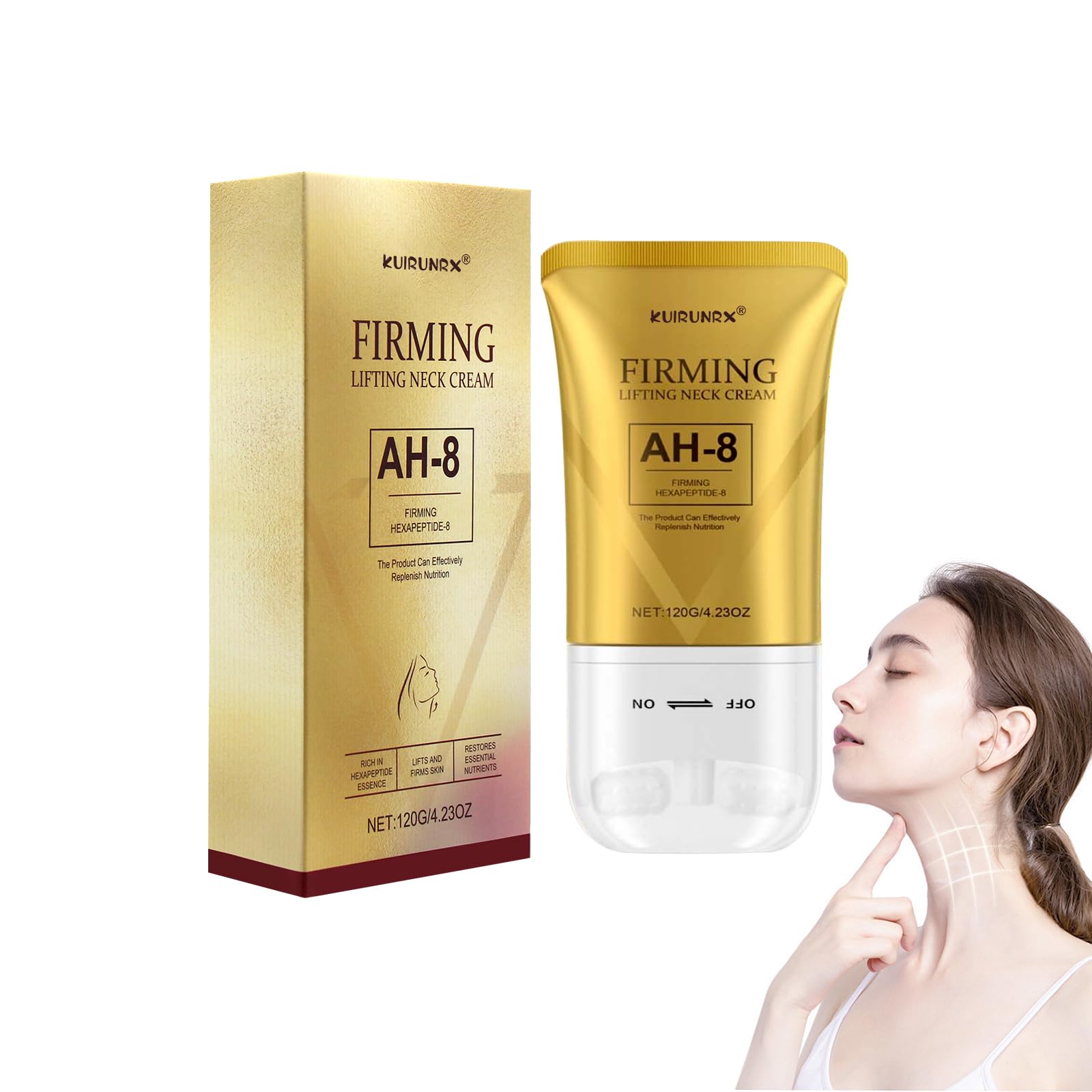 Specially formulated for the sensitive skin of the neck and décolleté, this powerful cream helps reduce the appearance of fine lines, wrinkles and sagging skin. Enriched with natural ingredients, it promotes elasticity, firms the skin and provides a radiant, lifted look. The included massage roller improves use, stimulates blood circulation and improves absorption for faster and visible results. With regular use of this neck cream, the skin is hydrated, nourished and toned, leaving it feeling smooth and rejuvenated. Main features: Reduces fine lines, wrinkles and sagging skin for a visibly firmer neck. Natural ingredients gently nourish and hydrate the sensitive neck and décolleté. The massage roller can improve the absorption of the cream and promotes the elasticity of the skin for a lifting effect. Product specifications: Product Name: Firming Neck Cream Net weight: 120g. Package dimensions: 16.5 x 8.7 x 3.5 cm Package weight: 177 g. Main benefits: firming of the neck, wrinkle reduction, hydration and firming of the skin SAFETY WARNING noneSuitable for all skin types: the firming neck cream mainly uses many other natural ingredients that are very gentle on the skin. Suitable for all skin types. This neck cream helps you effectively care for your neck. Effective improvement of the skin: the anti-aging neck cream contains strong skin repairing and regenerating properties. It combines hydration, nourishment and repair to boost skin metabolism and keep skin looking younger. Easy to use: twist the cap and press the bottle to squeeze out the cream, use this refreshing applicator gently in an upward motion on the neck and décolleté area to absorb more skin care cream and achieve a massage effect. Roller Design: Our neck cream is equipped with double roller massage balls that help massage the neck, reduce throat edema and relax the neck, and promote faster absorption. Firming neck cream: this neck cream is intended for the care of the neck. It smoothes and tightens the skin and gradually slows down the sagging of the skin, thus reducing the feeling of aging. Suitable for neck, jaw and décolleté.Firming Neck Cream, natuurlijke halsverstevigingscrème en tegen rimpels met roller, verstevigende crème nekcrème ter vermindering van rimpels, halslijnen en slappe huid, 120 g Deze krachtige crème is speciaal ontwikkeld voor de gevoelige huid van hals en decolleté en helpt het uiterlijk van fijne lijntjes, rimpels en slappe huid te verminderen. Verrijkt met natuurlijke ingrediënten bevordert het de elasticiteit, verstevigt de huid en zorgt voor een stralende, gelift look. De meegeleverde massageroller verbetert het gebruik, stimuleert de bloedcirculatie en verbetert de absorptie voor snellere en zichtbare resultaten. Bij regelmatig gebruik van deze nekcrème wordt de huid gehydrateerd, gevoed en gestroomlijnd, zodat deze glad en verjongd aanvoelt. Belangrijkste kenmerken: Vermindert fijne lijntjes, rimpels en slappe huid voor een zichtbaar strakkere hals. Natuurlijke ingrediënten voeden en hydrateren zacht de gevoelige hals en decolleté. De massageroller kan de opname van de crème verbeteren en bevordert de elasticiteit van de huid voor een lifting-effect. Productspecificaties: Productnaam: verstevigende nekcrème Nettogewicht: 120 g. Afmetingen van de verpakking: 16,5 x 8,7 x 3,5 cm Gewicht verpakking: 177 g. Belangrijkste voordelen: versteviging van de hals, rimpelvermindering, hydratatie en versteviging van de huid VEILIGHEIDSWAARSCHUWING geenGeschikt voor alle huidtypes: de verstevigende nekcrème gebruikt voornamelijk veel andere natuurlijke ingrediënten die zeer zacht zijn voor de huid. Geschikt voor alle huidtypes. Deze nekcrème helpt je effectief om je nek te verzorgen. Effectieve verbetering van de huid: de anti-aging nekcrème bevat sterke huidreparerende en regenererende eigenschappen. Het combineert hydratatie, voeding en reparatie om de stofwisseling van de huid te stimuleren en de huid er jonger uit te laten zien. Eenvoudig in gebruik: draai de dop en druk op de fles om de crème eruit te drukken, gebruik deze verfrissende applicator zachtjes in een opwaartse beweging op de hals en het decolleté-gebied om meer huidverzorgingscrème op te nemen en een massage-effect te bereiken. Rolontwerp: onze nekcrème is uitgerust met dubbele roller-massageballen die helpen de nek te masseren, keeloedeem te verminderen en de nek te ontspannen, en bevordert een snellere absorptie. Verstevigende nekcrème: deze nekcrème is bedoeld voor de verzorging van de nek. Het maakt de huid glad en strakker en vertraagt geleidelijk de verslapping van de huid en vermindert zo het gevoel van veroudering. Geschikt voor hals, kaak en decolleté.