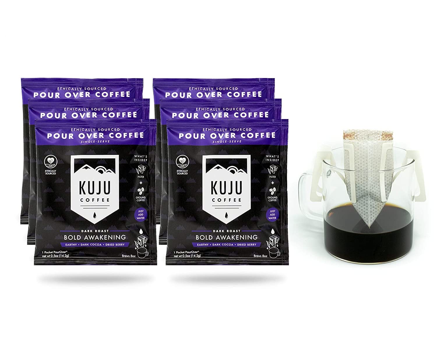 Kuju Coffee Premium Single-Serve Pour Over Coffee | Ethically Sourced, Specialty Grade, Eco-Friendly | Bold Awakening, Dark Roast, 6-pack Bold Awakening - Dark Roast 0.5 Ounce (Pack of 6)