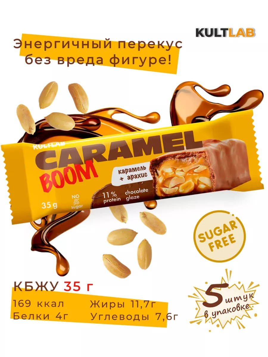 Правильное питание может быть не только вкусным, но и максимально полезным питанием для фигуры. Диетические батончики без сахара "Карамель Бум" от КультЛаб являются тому подтверждением. В них содержится минимум калорий и отсутствует сахар. Caramel Boom Kultlab ореховый батончик для полноценного полдника, рекомендован как энергичный и питательный перекус до и после тренировки. Набирайте мышечную массу, восполняйте заряд энергии, заряжайте мозги или просто устройте перекус на ходу, включив в здоровое питание батончики Caramel boom! Орехи , карамель, молочная глазурь...правильный перекус для тебя! Спортивное питание подходит и мужчинам и женщинам. Батончики без сахара для похудения просто идеальны. Выбираейте здоровое и красивое тело вместе с нами!