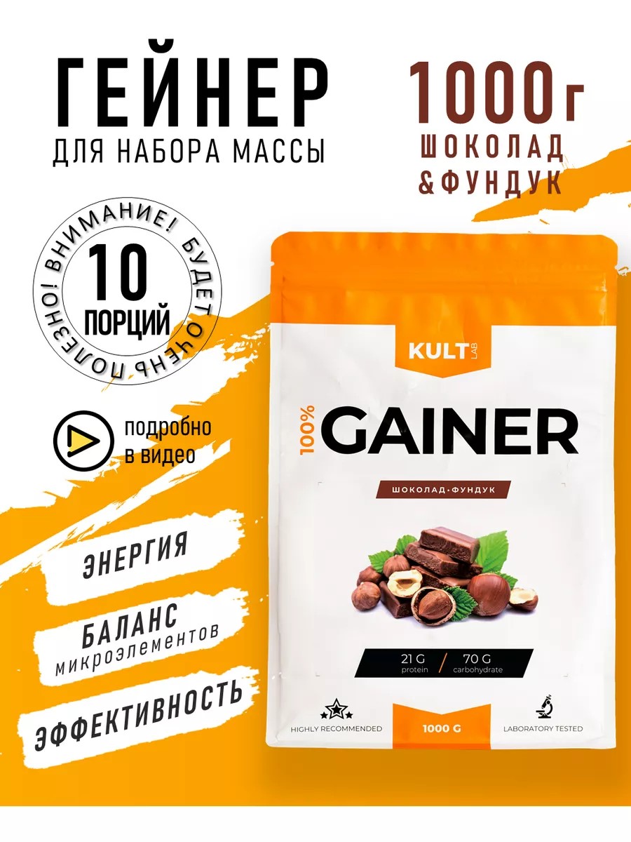Gainer from Kultlab is a sports nutrition supplement designed to enrich athletes' diets before, after, or instead of meals.