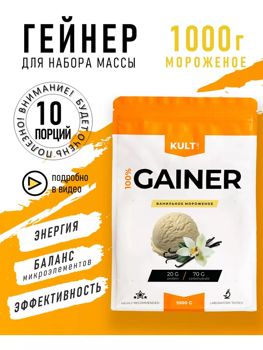 Gainer from Kultlab is a sports nutrition supplement designed to enrich athletes' diets before, after, or instead of meals.