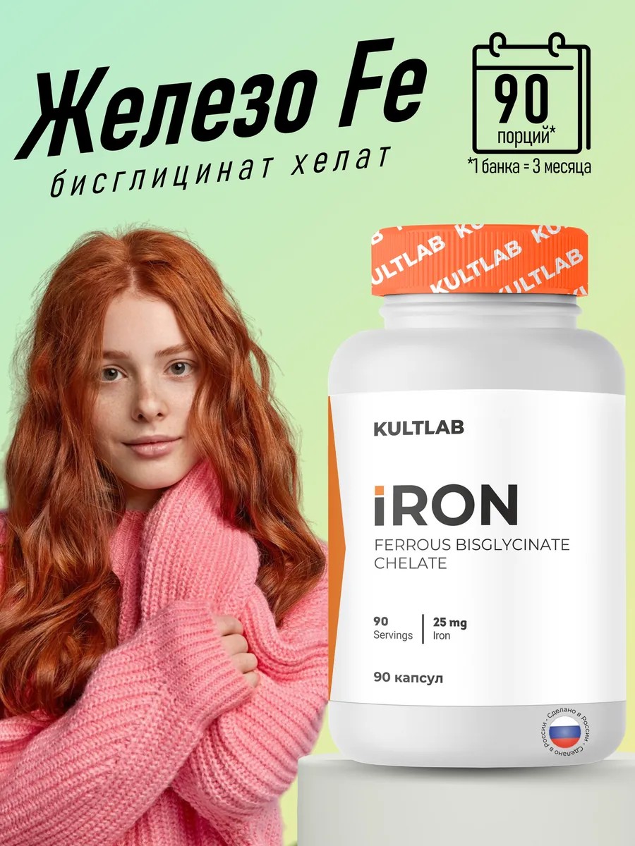 Kultlab iron ferrous bisglycinate chelate 25 мг (бисглицинат хелат) - биодоступное легкоусваяемое железо. Железо бисглицинат – органическая форма железа, которая легко усваивается организмом, в отличие от других форм. Это означает, что ваш организм получает максимальную пользу от каждого мг железа.