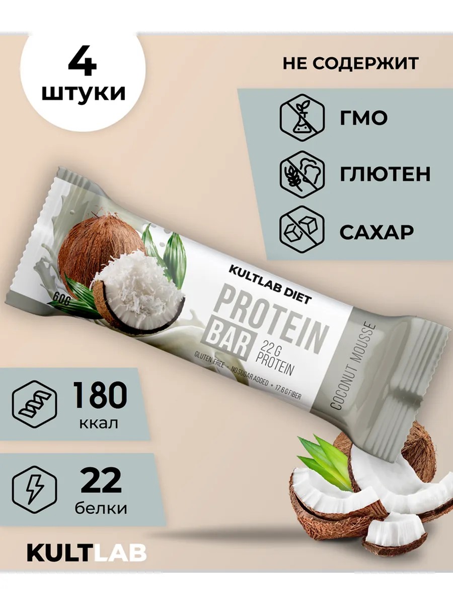 Протеиновые батончики КультЛаб, 4 шт, Кокосовый мусс