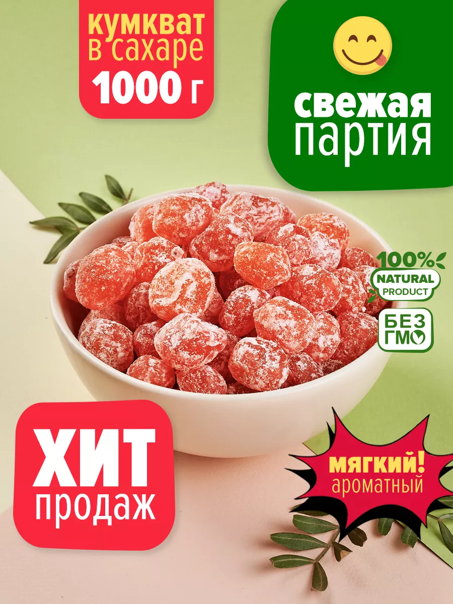 Сушеный кумкват - это разновидность сухофруктов, которые получают путем сушки плодов мандарина. Вкусный, натуральный и очень полезный сухофрукт для детей и взрослых без ГМО, без красителей и других химических веществ. Натуральные сухие фрукты отлично подходят к праздничному столу или в качестве здорового перекуса или сладкого детского подарка. Наш продукт не содержит ароматизаторов и усилителей вкуса.