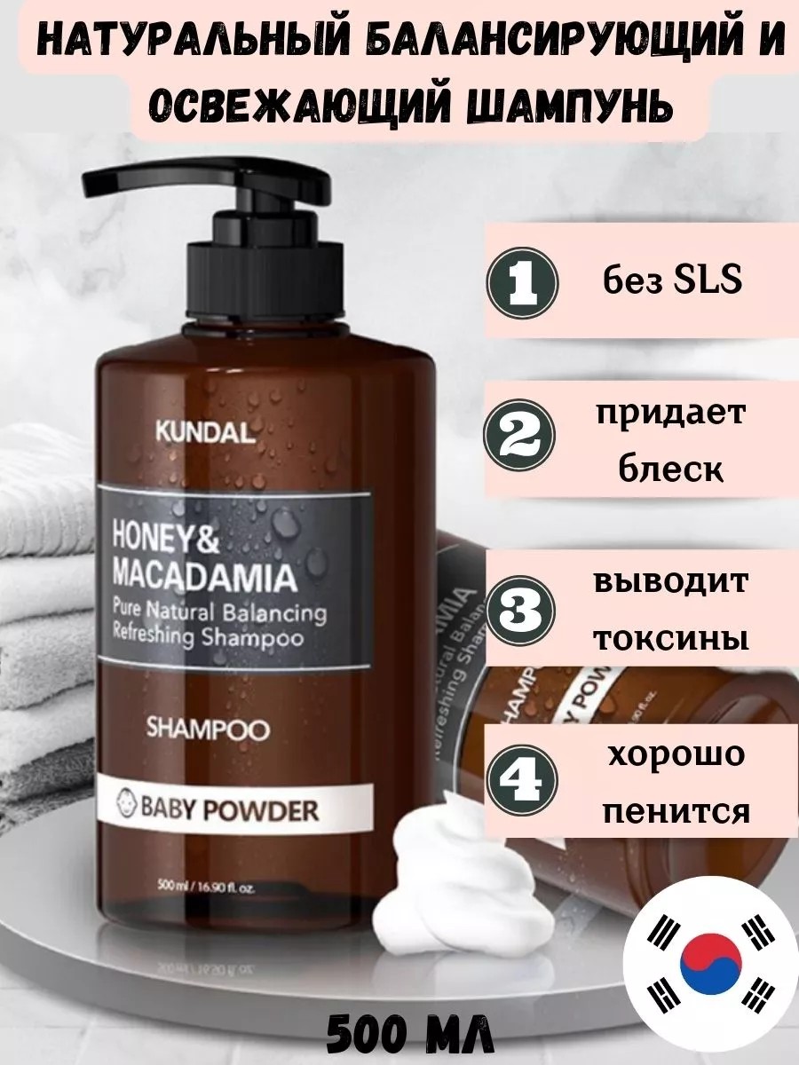 Натуральный балансирующий и освежающий шампунь от Kundal содержит мед и экстракт макадамии, которые помогают очистить кожу головы и волосы. Состоит на 97,4% из натуральных ингредиентов и содержит 44 экстракта растительного происхождения. Поверхностно-активные вещества бережно очищают и поддерживают pH-баланс кожи головы и волос. Шампунь хорошо пенится и не содержит силиконов. Протестирован на отсутствие 12 вредных ингредиентов: 7 видов парабенов, дифенилкетон, минеральные масла, метилизотиазолинон и метилхлоризотиазолинон. Все ингредиенты, помимо отдушки, соответствуют качеству Рабочей группы по охране окружающей среды*.Гипоаллергенный продукт.