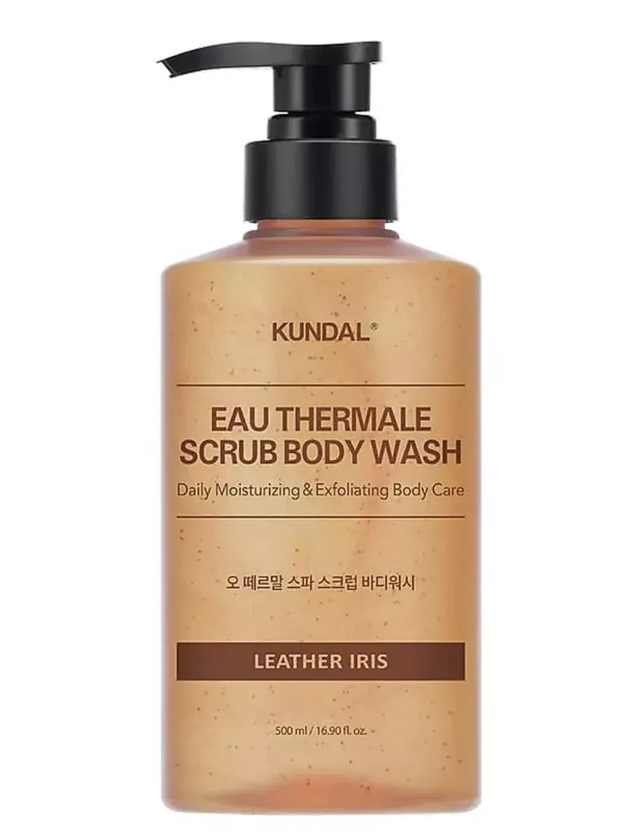 KUNDAL Leather Iris Body Scrub Gel, 500 ml. This body scrub contains soothing ingredients to gently moisturize the skin. Walnuts and sea salt, combined with AHA and PHA acids, help remove dead skin and impurities. Rice powder, included in the scrub, will give your skin a long-lasting radiance and smoothness. Directions: Apply a generous amount to a washcloth and lather. Massage into the body, then rinse thoroughly with warm water.