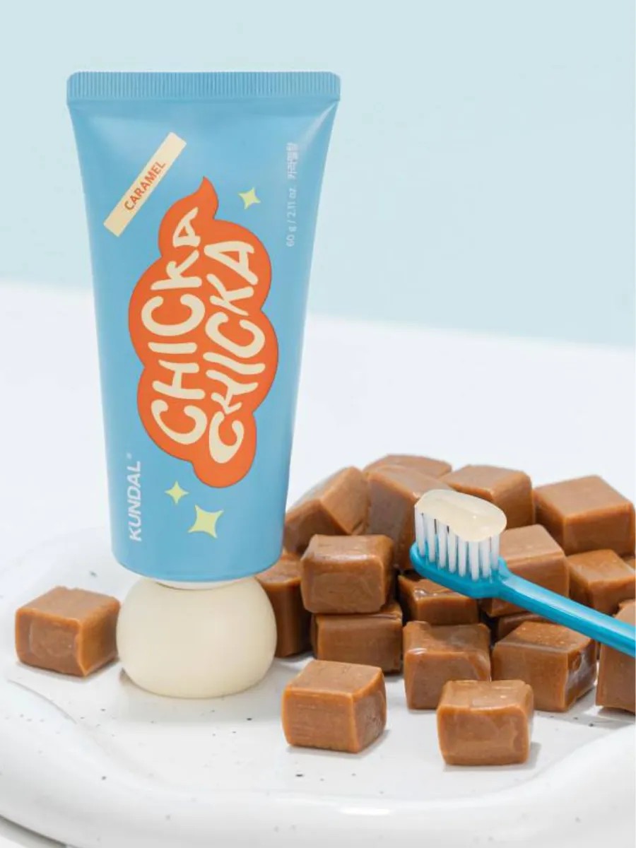 Chika Kids Smile Toothpaste Caramel by KUNDAL is a children's toothpaste with a pleasant caramel flavor that makes brushing teeth fun.
