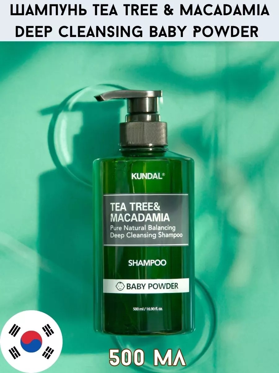 Шампунь Tea Tree & Macadamia Deep Cleansing Baby Powder из серии Kundal – это высокоэффективное решение для очищения и придания блеска волосам. Он улучшает состояние кожи головы и стимулирует кровообращение, что способствует ускорению роста волос при постоянном использовании.
