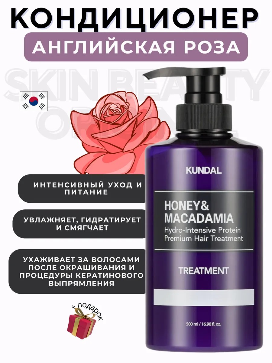 Kundal Honey & Macadamia Hair Treatment English Rose- кондиционер делает волосы более гладкими и эластичными, благодаря натуральным компонентам ухода, таким как мед и макадамия.