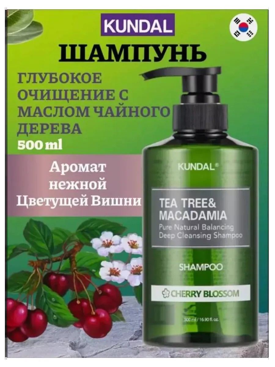 KUNDAL Шампунь для волос очищающий Цветок вишни, 500 мл. Натуральный балансирующий и освежающий шампунь от Kundal содержит мед и экстракт макадамии, которые помогают очистить кожу головы и волосы. Состоит на 97,4% из натуральных ингредиентов и содержит 44 экстракта растительного происхождения.