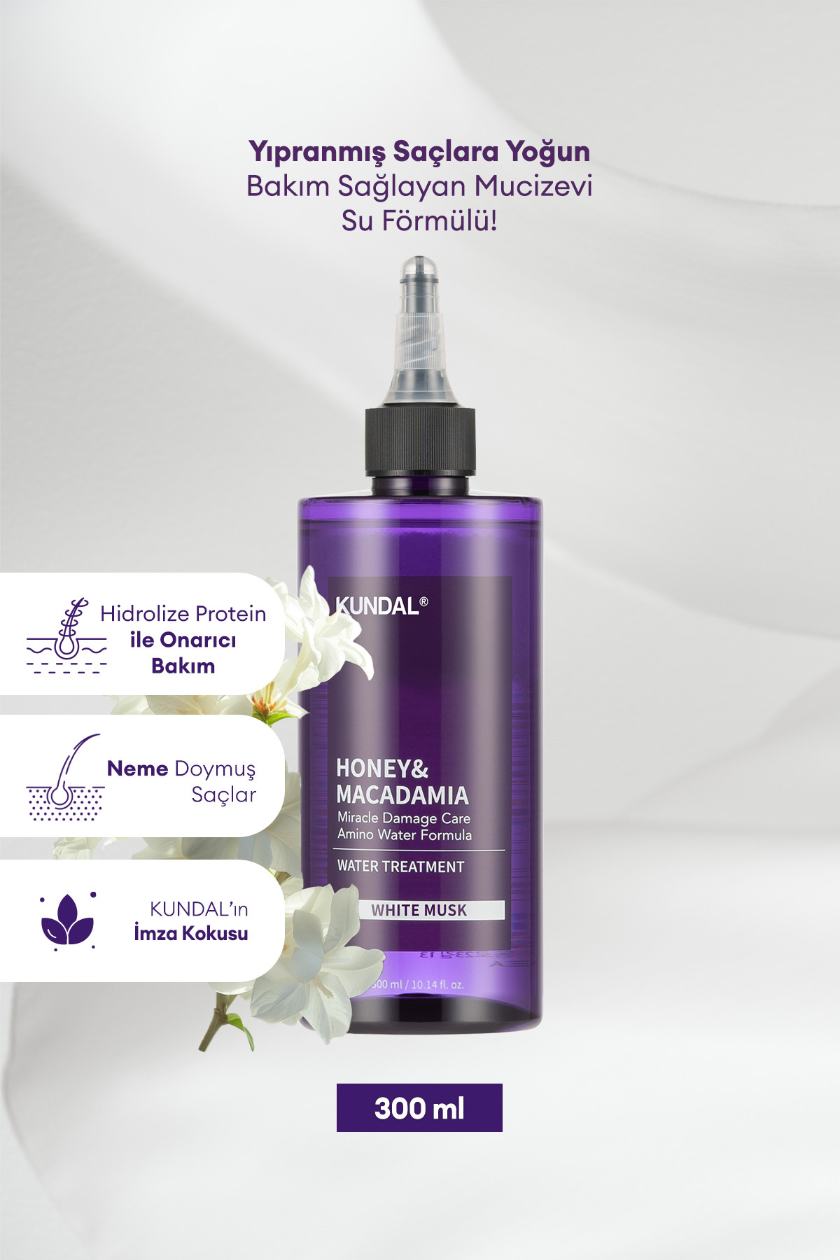 Kundal Intensive Care Liquid Hair Conditioner Miracle Damage Care Water Treatment 300ml (WHITE MUSK)