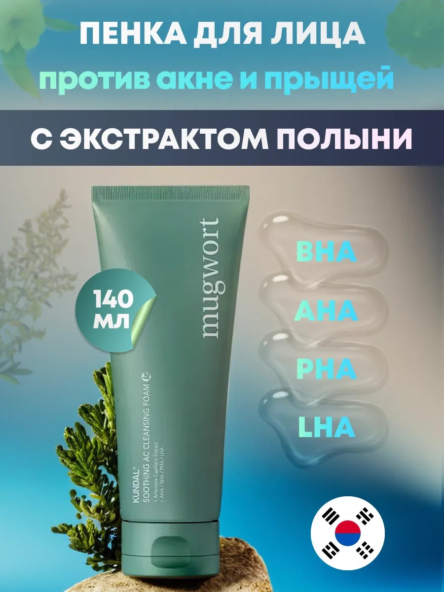 Эта Пенка для умывания с экстрактом полыни Mugwort Skin Care во флаконе 140 мл от азиатского бренда из Южной Кореи Kundal — истинное наслаждение для поддержания вашей красоты. Она бережно очищает, успокаивает и увлажняет, идеально подходя для тех, кто сталкивается с акне и проблемной кожей. Формула включает четыре мощных компонента: AHA, BHA, PHA и LHA, которые эффективно проникают в поры, устраняя излишки себума и омертвевшие клетки.