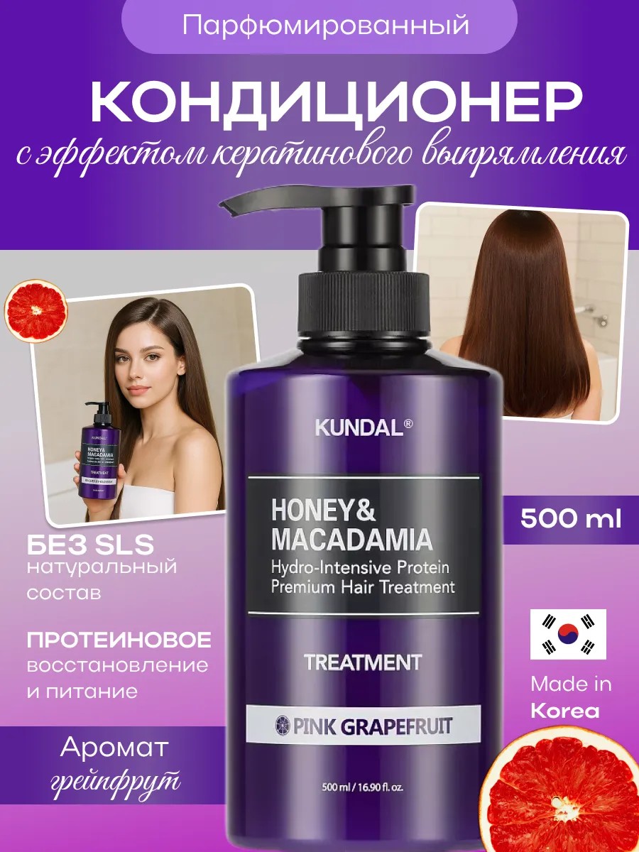 | Полное наименование товара | KUNDAL Кондиционер для волос Розовый грейпфрут Honey and Macadamia Treatment, 500 мл |