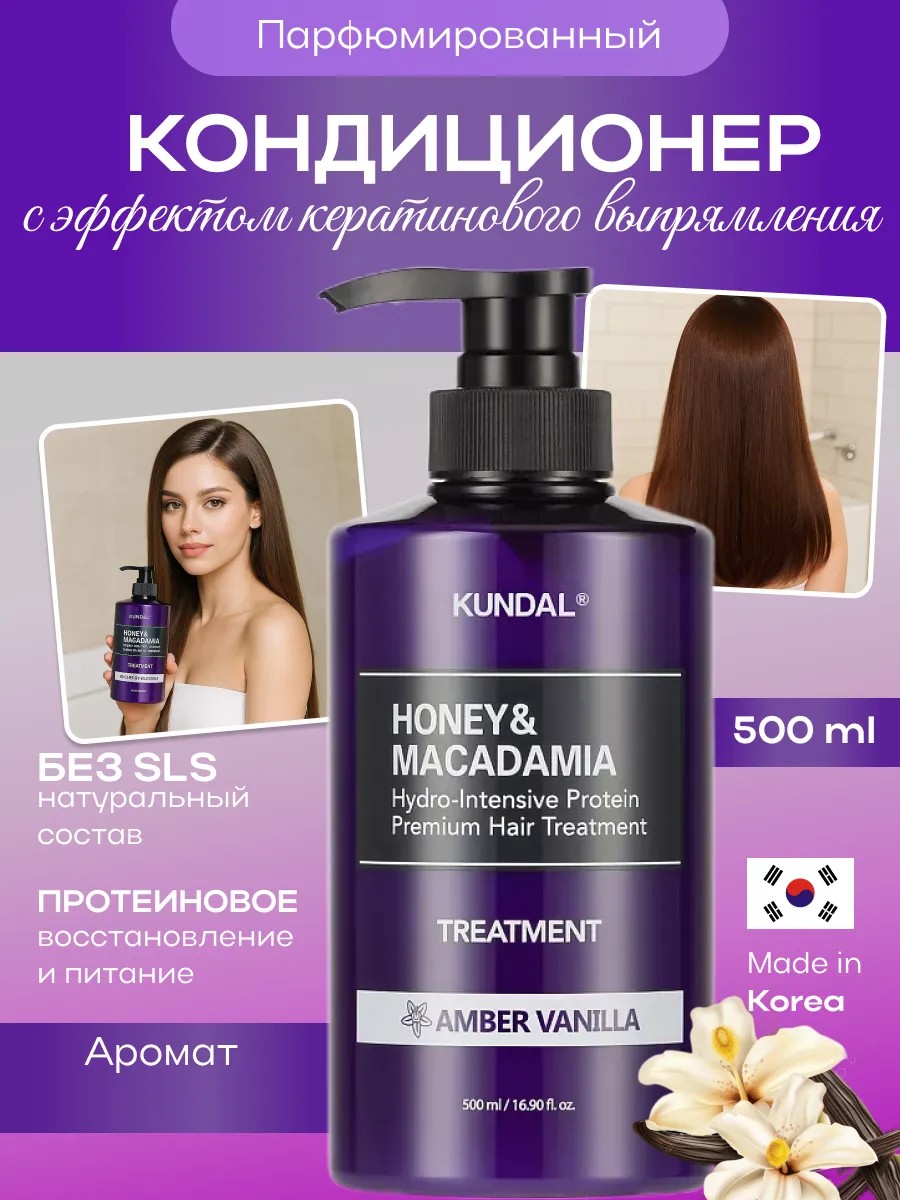 | Полное наименование товара | KUNDAL Кондиционер для волос Амбровая ваниль Honey and Macadamia Treatment, 500 мл |