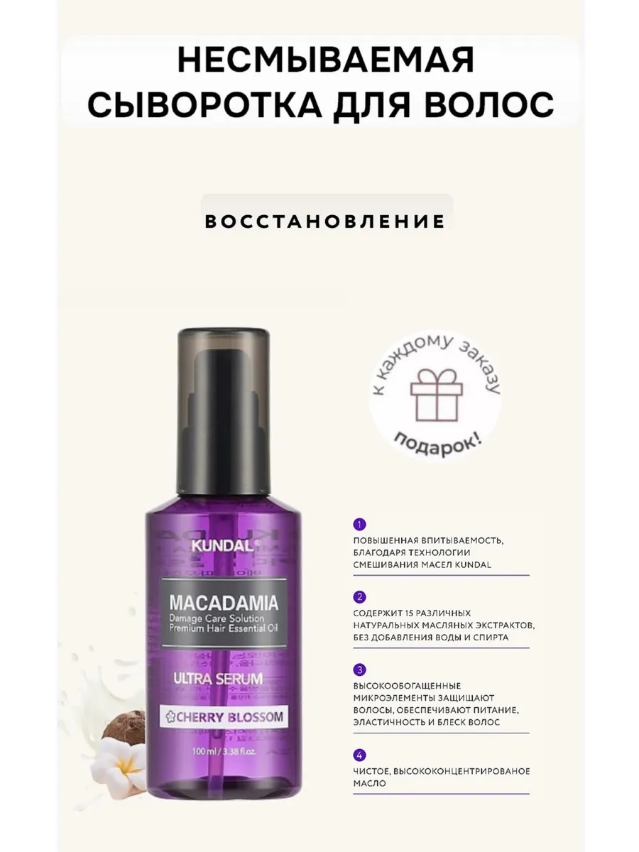 | Полное наименование товара | KUNDAL Сыворотка для волос восстанавливающая Цветок вишни Macadamia Ultra Serum |
