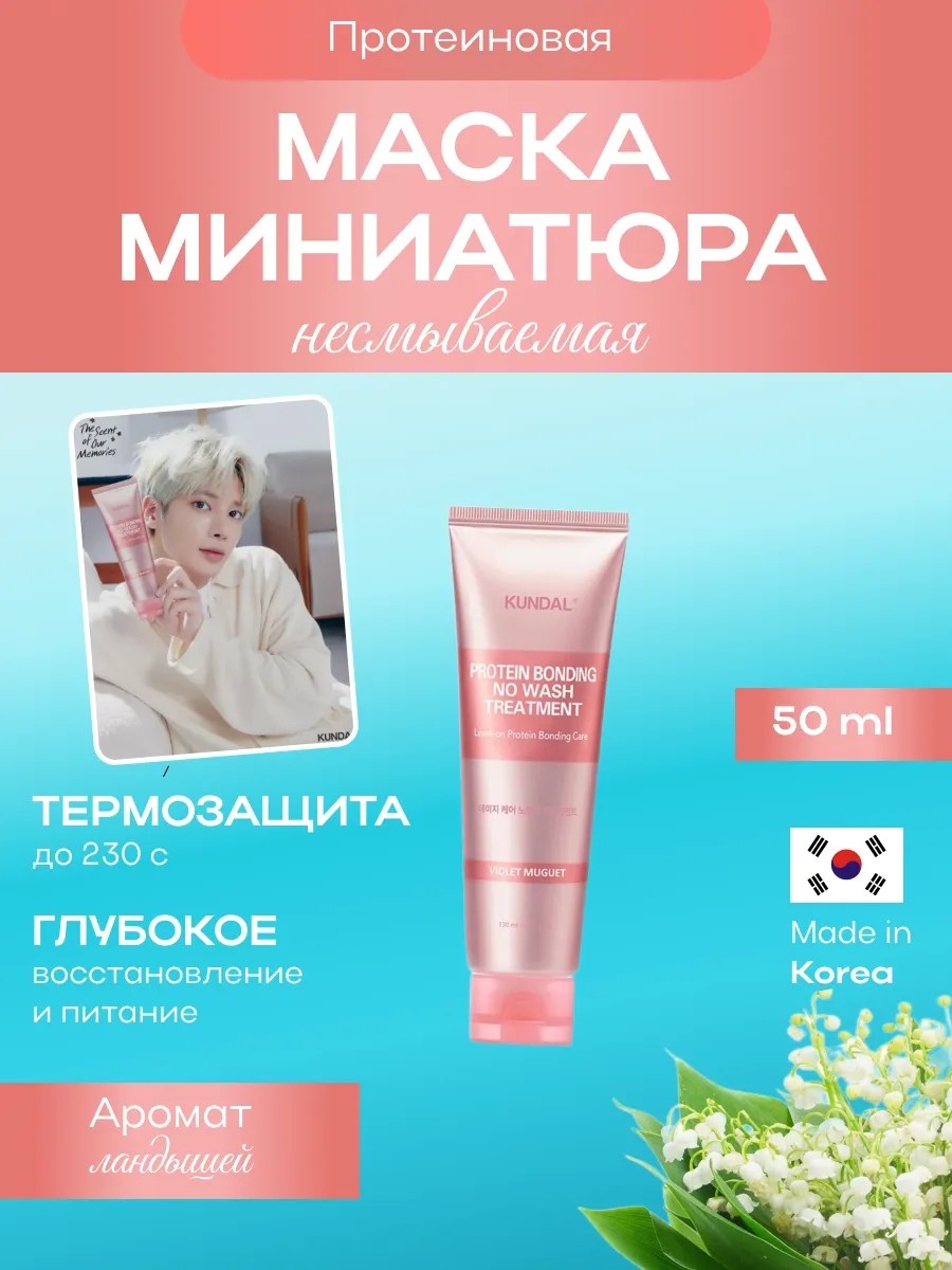 Маска миниатюра для волос несмываемая с термозащитой PROTEIN BONDING NO WASH TREATMENT 50ML (KUNDAL) с ароматом ландышей (VIOLET MUGUET).