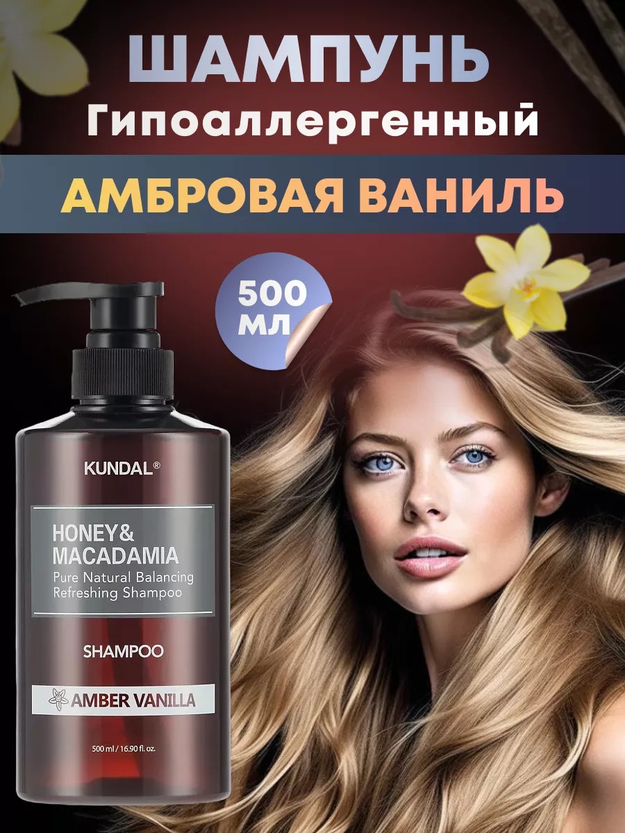 Шампунь KUNDAL Амбровая Ваниль - это настоящее открытие для тех, кто хочет, чтобы их волосы выглядели ухоженно и здорово! Дарит мягкость и шелковистость, эластичность и упругость. Изысканный сладкий запах этого люксового шампуня как дорогой парфюм, будет еще долго ощущается после мытья, а густая консистенция позволит экономично расходывать средство. Он не только улучшает состояние волосяного покрова, но и подходит для всех типов кожи головы, не вызывая раздражения, зуда и перхоти. Волосы после него легко расчесываются и не сушатся, блестят и выглядят живыми и красивыми, как после салона и похода к парикмахеру. Они также остаются дольше чистыми, подходит для ежедневного использования. Кроме того, он отлично справляется с волнистыми, непослушными прядями и делает кончики менее сухими, а корни менее жирные. Подходит как для обесцвеченных, тонких и ломких волос с секущимися кончиками, так и для любых других. Отлично пенится и промывает. Удобный дозатор и стильный дизайн флакона. Натуральные компоненты в составе активируют рост волос и препятствует их выпадению. Без вредных веществ, парабенов и силиконов.