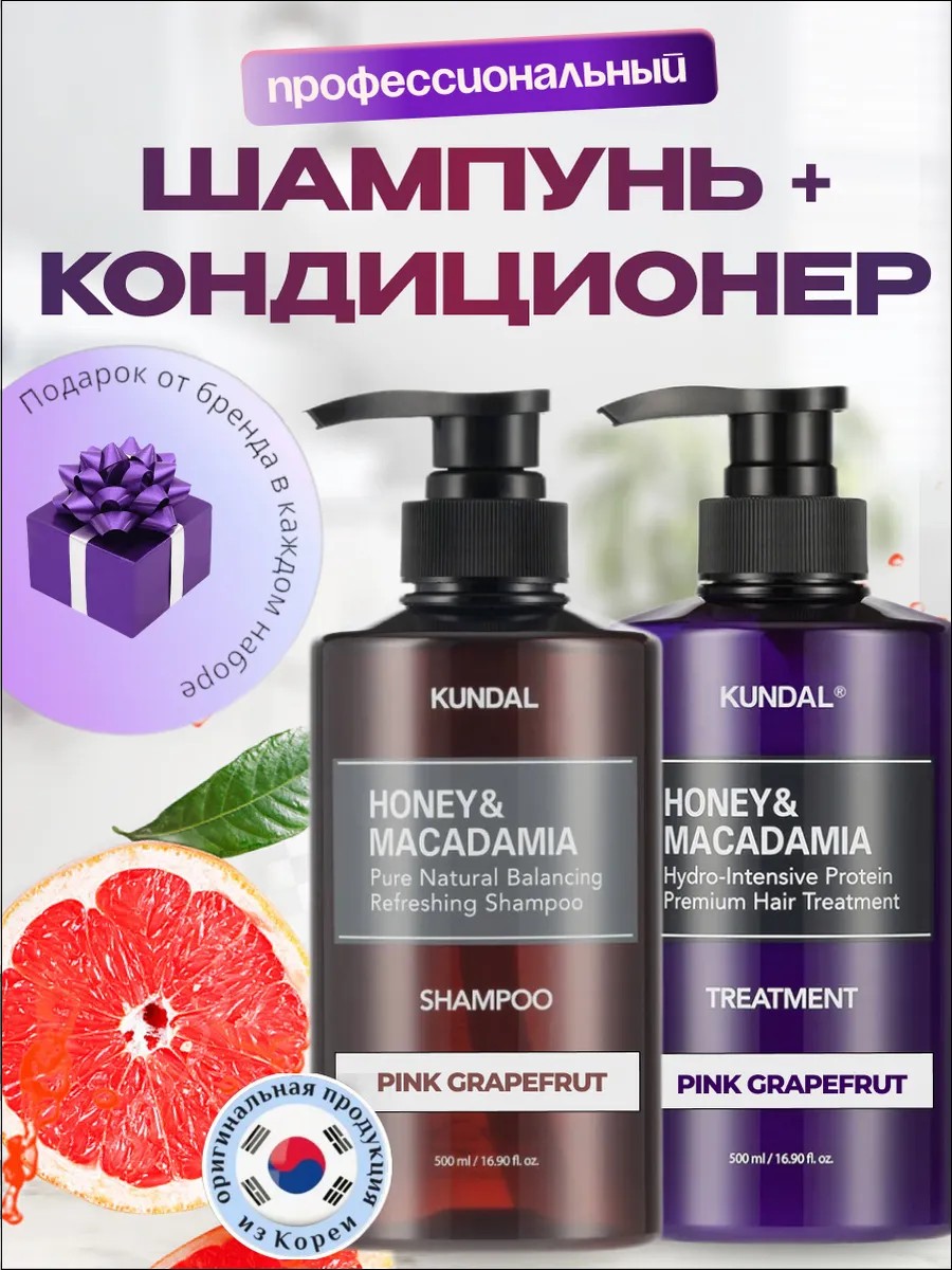 KUNDAL Кундал бессульфатный Шампунь для волос Pink grapefrut (аромат розового грейпфрута) , 500 мл.