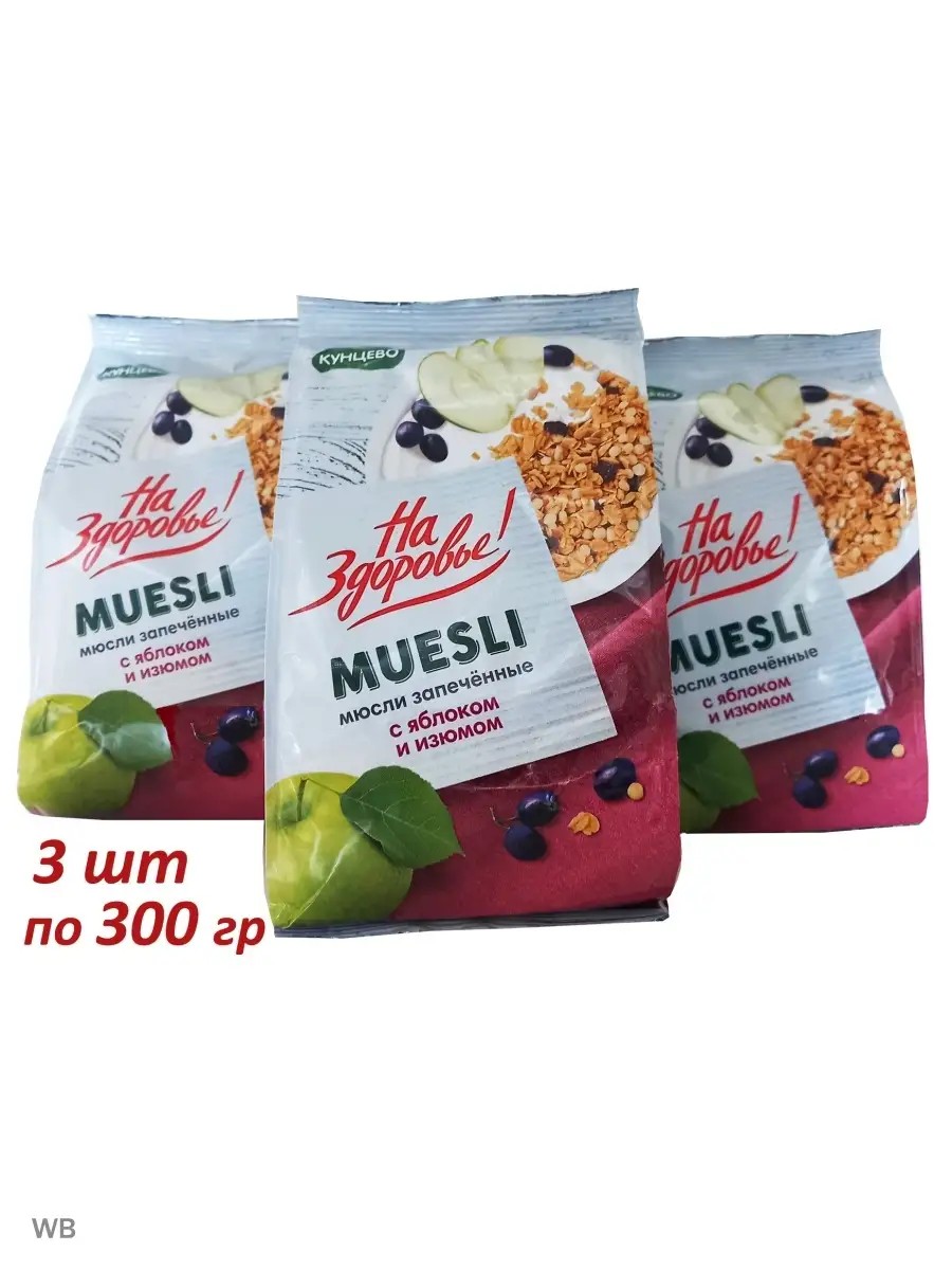 Мюсли с яблоком и изюмом, 300 гр. *3 шт