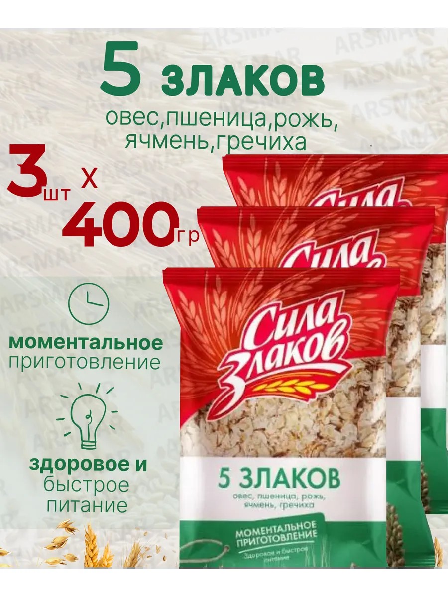 Овсяные хлопья 5 злаков не требующие варки 3пак по 400г