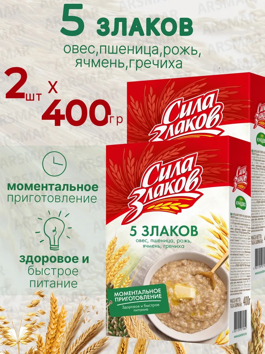 Овсяные хлопья 5 злаков не требующие варки 2шт по 400г