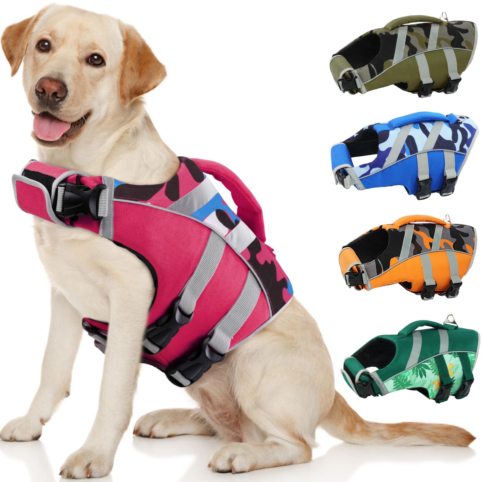 High visibility and creative design: Kuoser uses the most constant reflective band so that you can quickly recognize your dog.Kuoser dog swimming vests make her beloved dogs swimming, walking, boating, surfing, surfing, sailing or other water sports.Quick closure and exquisite workmanship: adjustable quick slaps around the neck and chest.Closure with sticker straps, simply put on and take off.Improved seams for the handle and the straps ensure the safety of the dogs.Adjustable carriers for a better fit.Comfortable neck opening reduces the friction of the dog hall.Upper handle and linen hook for the rescue: The Kuoser-puppy swimming vest has a handle on the top, which is perfect for simply lifting the rescue when they are in danger.The strong D-ring is practical for installing the dog leash if you want to go for a walk with your dog.Durable fabric with excellent flotation: The professional ripstop rescue vest consists of ripstop oxford and nylon fabric and high-tight pearl cotton foam that offers maximum flotation in the water.Our dog safety vest also offers a comfortable movement and does not restrict the movement on land.6 sizes available for this pet swimming vest: XS, S, M, L, XL, XXL fits for almost all types of furry friends, such as Teddy, Chihuahua, Beagle, Pudel, Bulldogge, Schnauzer, Labrador, Golden Retriever, etc. Please measureYour dog twice and carefully check our size table in the before buying.Hohe Sichtbarkeit und kreatives Design: Kuoser verwendet das beständigste reflektierende Band, damit Sie Ihren Hund schnell erkennen können. Kuoser Hunde-Schwimmweste macht Ihre geliebten Hunde zum Star beim Schwimmen, Spazierengehen, Bootfahren, Surfen, Segeln oder anderen Wassersportarten. Schnellverschluss und exquisite Verarbeitung: Verstellbare Schnellverschlussschnallen um Hals und Brust. Verschluss mit Aufkleberbändern, einfach an- und auszuziehen. Verbesserte Nähte für den Griff und die Riemen sorgen für die Sicherheit der Hunde. Verstellbare Träger für eine bessere Passform. Bequeme Halsöffnung reduziert die Reibung des Hundehalses. Oberer Griff und Leinenhaken für die Rettung: Die Kuoser-Welpen-Schwimmweste verfügt über einen Haltegriff an der Oberseite, der sich perfekt zum einfachen Anheben der Rettung eignet, wenn sie in Gefahr sind. Der starke D-Ring ist praktisch für die Installation der Hundeleine, wenn Sie mit Ihrem Hund spazieren gehen möchten. Strapazierfähiges Gewebe mit hervorragender Flotation: Die professionelle Ripstop-Rettungsweste besteht aus Ripstop-Oxford- und Nylongewebe und hochdichtem Perlen-Baumwollschaum, der maximale Flotation im Wasser bietet. Unsere Hundesicherheitsweste bietet auch eine bequeme Bewegung und schränkt die Bewegung an Land nicht ein. 6 Größen für diese Haustier-Schwimmweste erhältlich: XS, S, M, L, XL, XXL passt für fast alle Arten von pelzigen Freunden, wie Teddy, Chihuahua, Beagle, Pudel, Bulldogge, Schnauzer, Labrador, Golden Retriever usw Bitte messen Sie Ihren Hund zweimal und überprüfen Sie unsere Größentabelle in der sorgfältig vor dem Kauf.Kuoser Schwimmweste Hund, Haltbarkeit Hundeschwimmweste, Hervorragender Auftrieb Schwimmweste Hund klein groß mittel,Hohe Sicherheit hundeschwimmweste große Hunde Rosa M M Rosa