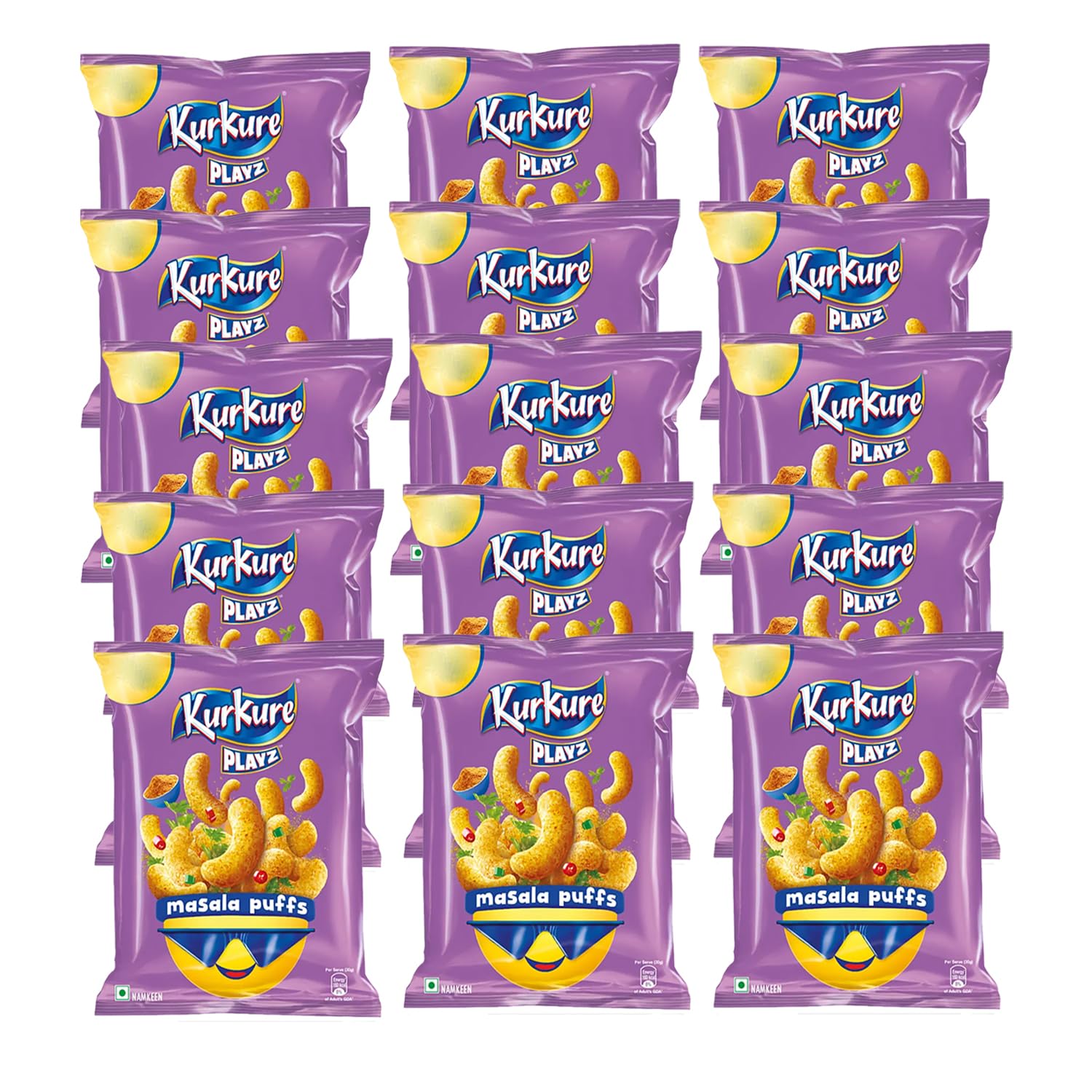 Kurkure (Playz Masala Puffs) (55 Gram) - Playful Shapes provide a satisfying mouthfeel with every bite (Pack of 15)