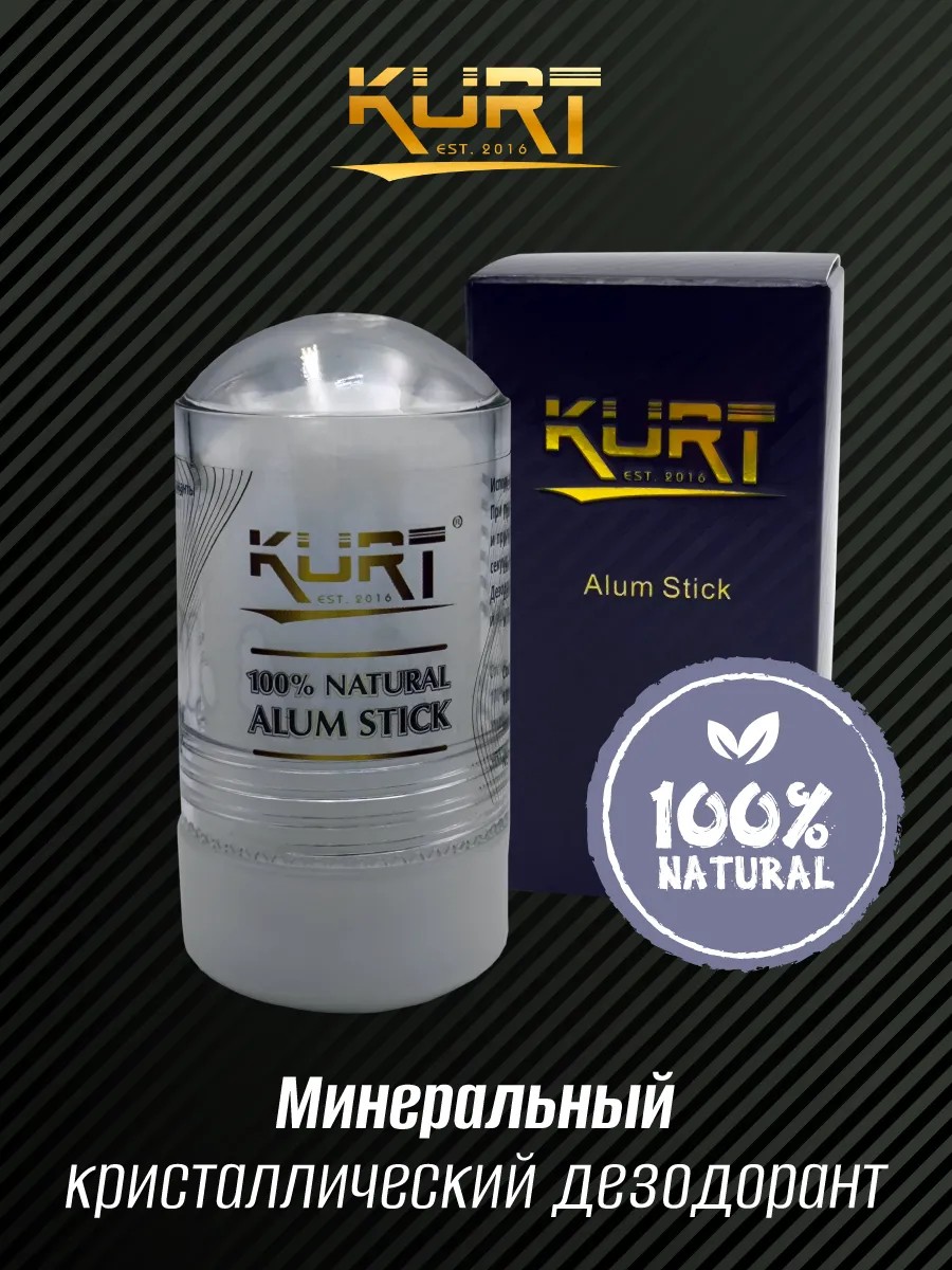 KURT Alum Stick. Round top. Deodorant for daily use, 60 g. Alum is a natural antiseptic, a universal product for use as an aftershave, deodorant, and skin care. Ideal for people with sensitive and allergic skin. Just moisten the stick with cool water and rub it into the skin. Alum is odorless, so it can be used by both women and men. Action: relieves irritation and heals minor cuts. Does not interfere with the elimination of toxins through the sweat glands. Tightens and tones the skin (when used on the face). Leaves no marks on clothing. Packaged in an individual branded black box.
