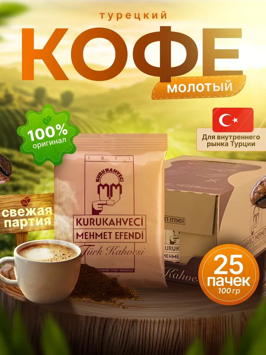 KURUKAHVECI MEHMET EFENDI Кофе молотый турецкий Mehmet Efendi арабика 25 шт по 100 г