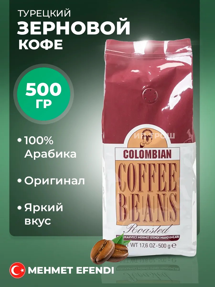 Кофе в зернах Колумбийский от компании Kurukahveci Mehmet Efendi "Colombian Cofee Beans". Состоит из тщательно отобранных высококачественных ядер колумбийской арабики тщательно обжаренных. Обладает сбалансированным ароматом и кислотностью и мягким вкусом. Вкус от сладких орехов до шоколадных, карамельных, тропических фруктов, они содержат широкий спектр вкусов. Кофе Mehmet Efendi Colombian обжаривается с использованием сочетания традиционного мастерства обжарки и внимания к деталям. Благодаря нашей новейшей технологии упаковки, наш кофе сохраняет свой аромат и свежесть не менее двух лет. Подходит для кофемашин, а при среднем помоле можно использовать в гейзерных и рожковых кофеварках.