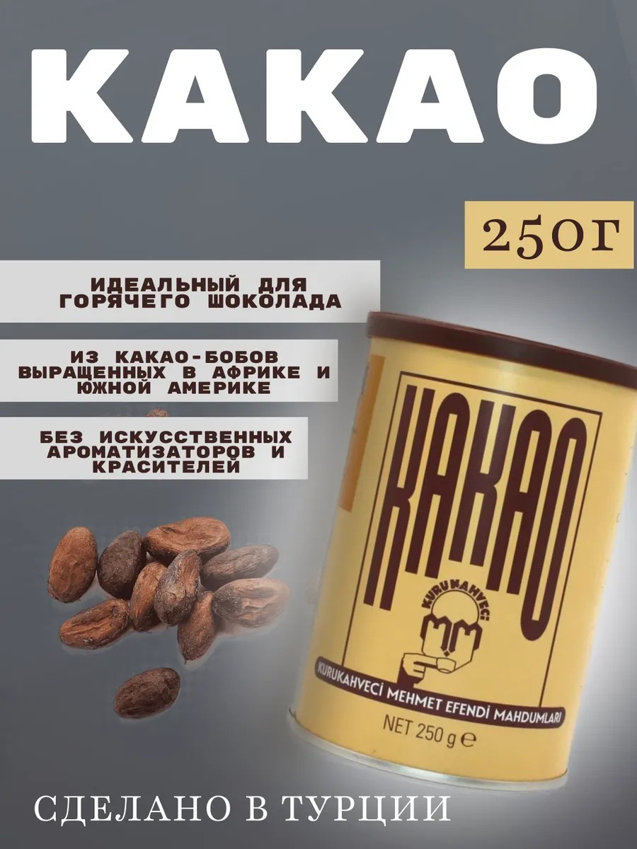 Кто не любит выпить кружку теплого, ароматного какао? Этот напиток любим всеми с детства, ведь он так прекрасно согревает в непогоду, создает уют и приятную атмосферу. Какао от известного турецкого производителя Mehmet Efendi - это 100% какао порошок премиум-качества, никаких ароматизаторов и неизменный прекрасный вкус. Особая жестяная вакуумная банка надолго сохранит вкус этого напитка, чтобы Вы могли наслаждаться им как можно дольше и угощать им своим гостей. Добавьте к какао Mehmet Efendi чуточку корицы, чтобы добавить приятный утонченный аромат и легкую пряность. Прямые продажи . Продукт высочайшего качества.