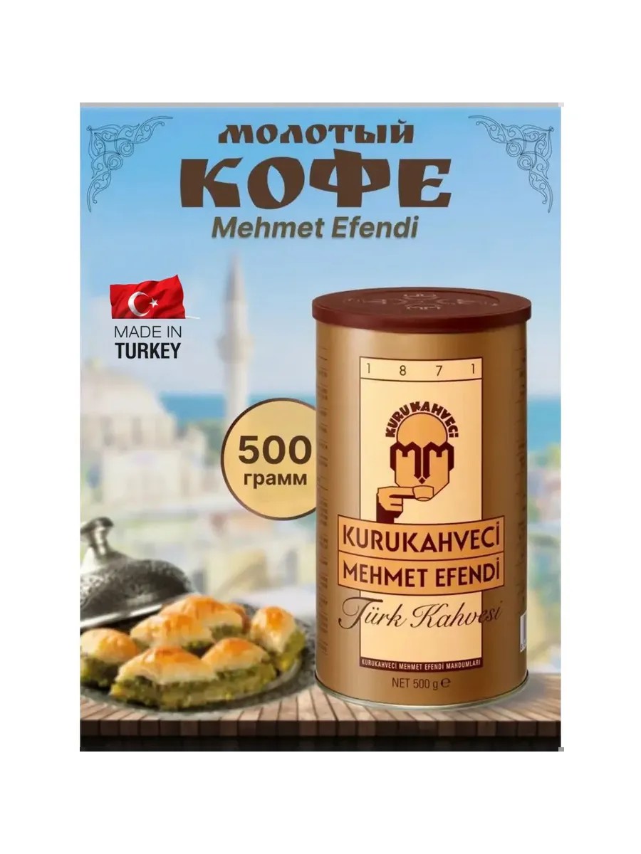 Турецкий кофе мелкого помола, средней обжарки произведенный из 100% арабики 500гр. в жестяной банке от известнейшего кофейного дома Kurukahveci Mehmet Efendi.