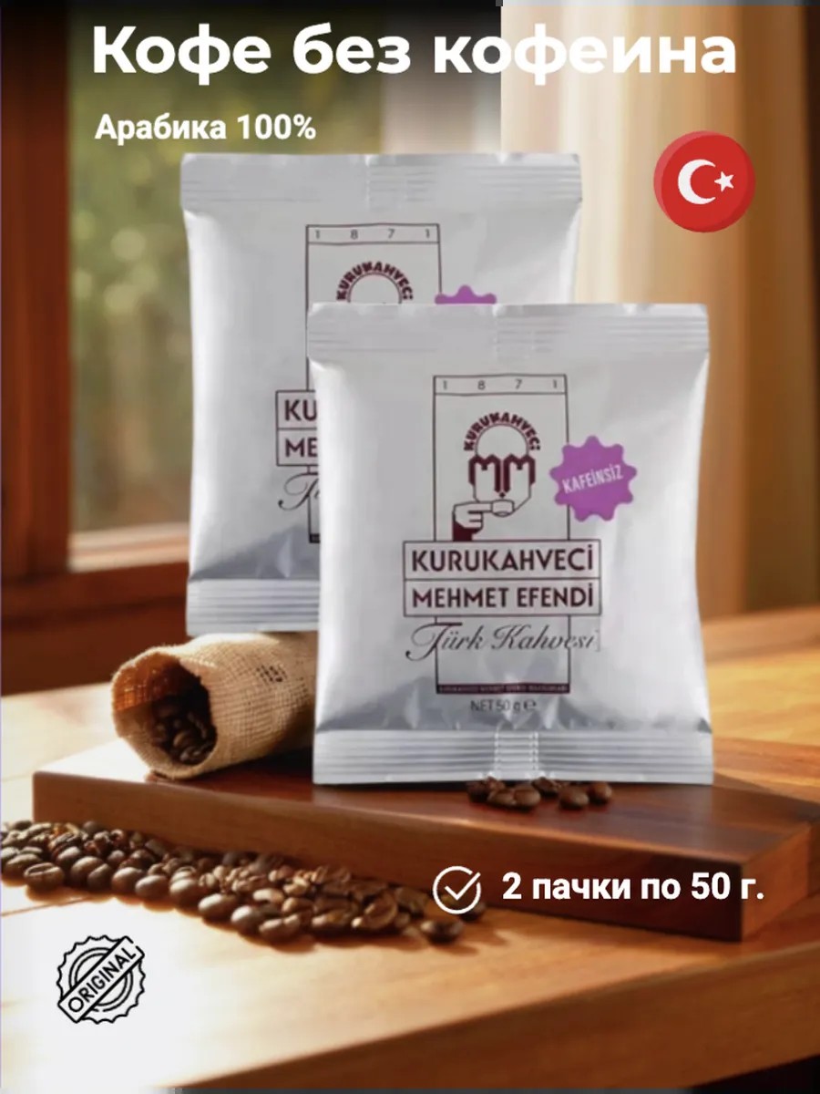 Кофе без кофеина молотый натуральный для турки арабика от известного турецкого бренда Kurukahveci Mehmet Efendi. Декаф (decaf) – это кофе, прошедший процедуру удаления кофеина тем или иным способом. Таких способов всего пять, в данном случае используется самый надежный и чистый метод промышленной очистки зерен кофе от кофеина при помощи диоксида углерода (CO2) в сверхкритическом (сжиженном) состоянии под давлением до 300 атм. В таком виде газ выступает в качестве растворителя, метод по своей логике является «прямым». Считается самым дорогим из-за сложности применяемого оборудования при этом позволяющий извлечь до 99,9% содержащегося изначально кофеина, что дает понижение в чашке со средних 100 мг до 3 мг в пересчете на чистое вещество. Кофе без кофеина kurukahveci произведен из 100% арабики родом из Колумбии. Турецкое без кофеина кофе имеет среднюю обжарку и насыщенный крепкий вкус и аромат. Удобная фасовка в фольгированные пакеты без кофеина по 50 грамм позволяет всегда иметь под рукой великолепный свежий кофе там где это удобно. Кофе молотый без кофеина это лучший турецкий кофе.