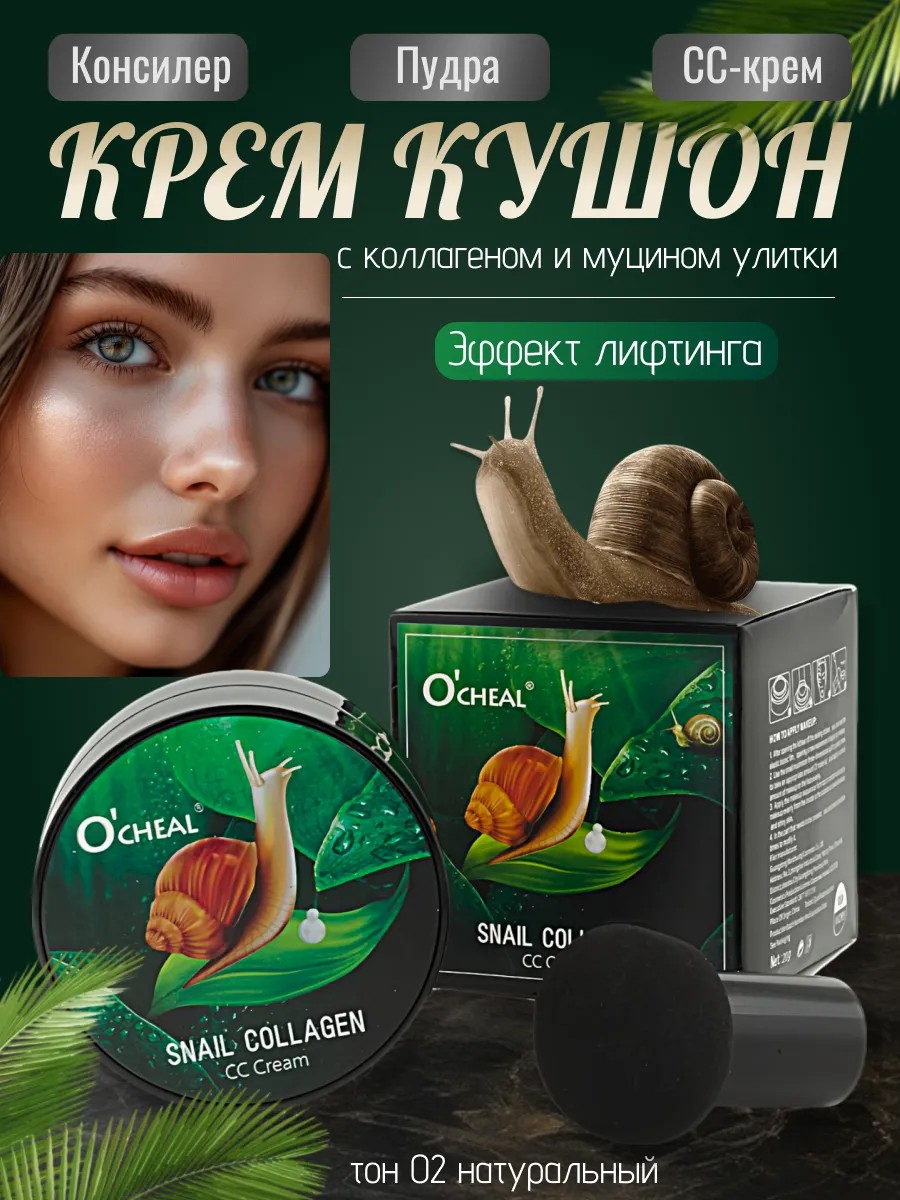 This cushion foundation CC cream with snail mucin and collagen is the perfect solution for creating flawless makeup and skin care.