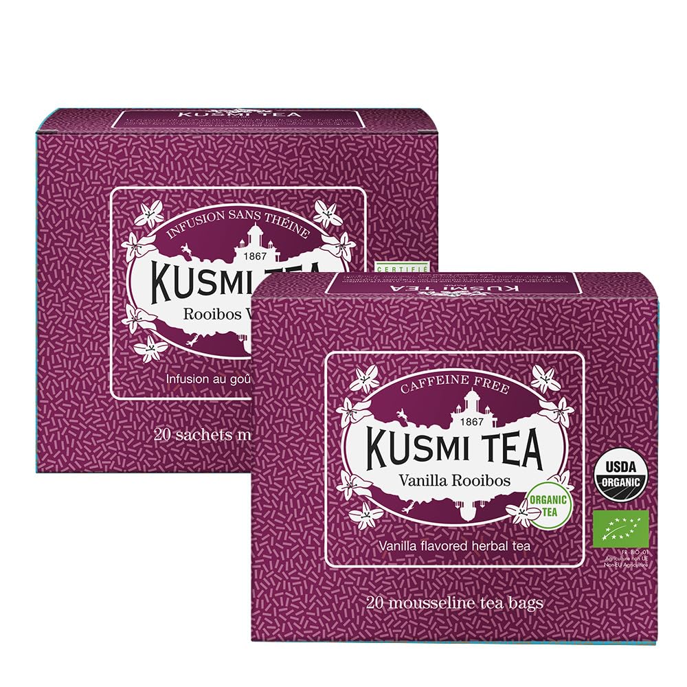 KUSMI TEA Kusmi Tea - Vanilla Rooibos - Pack of 2 boxes - Organic Infusion - Rooibos from Organic Farming - Caffeine-Free Infusion - Enjoy Hot or Iced Tea - 2 x 20 Tea Bags
