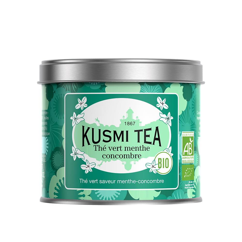 ? At Kusmi Tea, it's a constant revolution: all fruits are welcome, and so are all people. Our mission is to share the best of tea with as many people as possible. Organic tea, made in Normandy, accessible, delicious, and optimistic, without any fuss or pretension. Drinking Kusmi Tea means embracing this ideal of freedom. ? RESPONSIBLE PACKAGING: Our tins are made of metal and guarantee optimal protection for our blends. Even after opening, the freshness and flavors of our blends are preserved. The metal tins are recyclable and refillable. The blend is packaged in France, in our workshops in Le Havre, Normandy. ? TASTING INSTRUCTIONS: To best appreciate this tea, we recommend a 3-minute infusion with water at 80 C (176 F). The 100g tin makes approximately 50 cups. ? ORGANIC INGREDIENTS: Like most Kusmi Tea products, this tea is 100 organic and natural. The pleasure of tea comes from its ingredients, their origin, and how they are processed. Choose a Made in France, organic, plastic-free tea. ? RELAX WITH DELICIOUSNESS: This organic green tea with mint and 100 natural cucumber flavor is a delicious and refreshing creation from Kusmi Tea. The cucumber and mint are in perfect harmony, offering you a divinely light and, above all, very thirst-quenching tea.? Chez Kusmi Tea, c'est la révolution permanente : tous les fruits sont permis et tous les gens aussi. Faire découvrir le meilleur du thé au plus grand nombre, voilà notre mission. Un thé bio, made in Normandie, accessible, gourmand et optimiste sans chichis, ni manières. Boire Kusmi Tea, c'est embrasser cet idéal de liberté. ? PACKAGING RESPONSABLE : Nos boîtes sont en métal et garantissent une protection optimale de nos mélanges. Même après ouverture, la fraîcheur et les saveurs de nos mélanges sont conservées. Les boîtes métal sont recyclables et rechargeables. Le mélange est conditionné en France, dans nos ateliers au Havre, en Normandie. ? CONSEILS DE DÉGUSTATION : Pour apprécier au mieux ce thé, nous recommandons une infusion de 3 minutes avec une eau à 80 C. La boîte de 100g permet de déguster environ 50 tasses. ? INGREDIENTS BIO : Comme la plupart des produits Kusmi Tea, ce thé est 100 bio et naturel. Le plaisir du thé vient de ses ingrédients, de leur origine et de la manière dont ils sont traités. Optez pour un thé Made in France, BIO, sans plastique. ? DÉTENDEZ-VOUS AVEC GOURMANDISE : ce thé vert bio à la menthe et aux arômes 100 naturels de concombre est une création gourmande et rafraichissante de Kusmi Tea. Le concombre et la menthe sont en parfaite harmonie et vous offrent un thé divinement léger mais surtout très désaltérant.Kusmi Tea - Vert Menthe Concombre Bio - Thé Vert Biologique aux Feuilles de Menthe et Arômes Naturels de Concombre - Boîte Métal 100g - Environ 50 Tasses